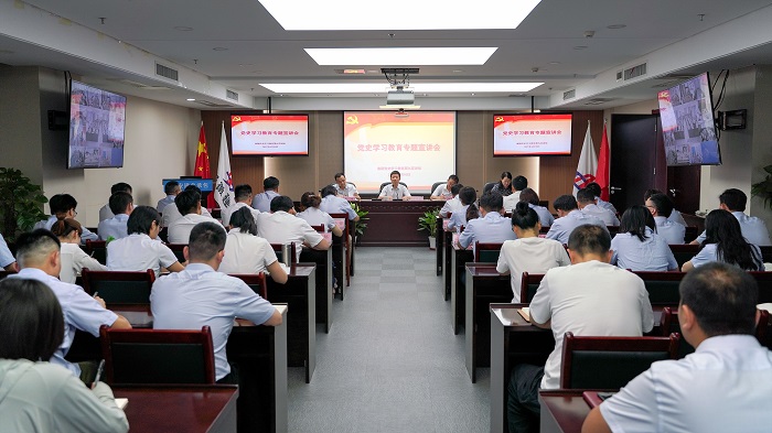 會議以現場加視頻形式召開,機關中層管理人員和全體黨員等40余人在主會場參會,各分支機構負責人、所屬部門及項目負責人、群團組織負責人和黨員共160余人在分會場視頻參會。