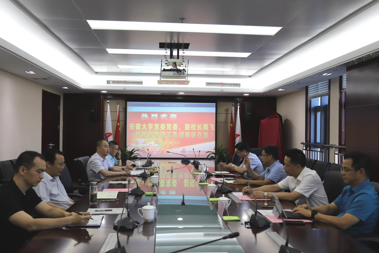 8月31日下午,安徽大學黨委常委、副校長周飛一行赴建工集團調研交流。建工控股領導李有貴在安建大廈28樓會議室親切接待來訪客人一行,并主持召開座談會。