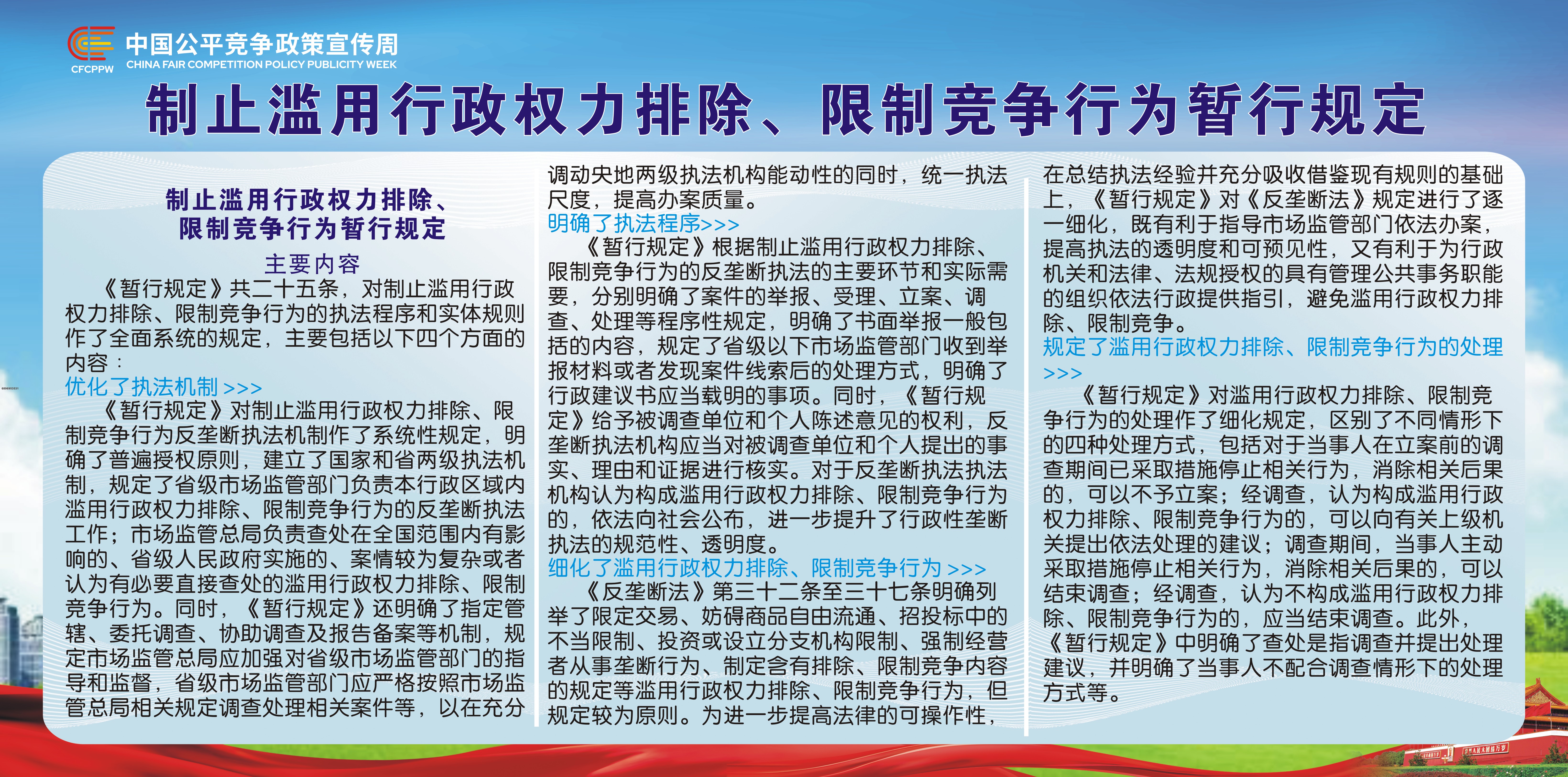 制止濫用行政權力排除、限制競爭行為暫行規定