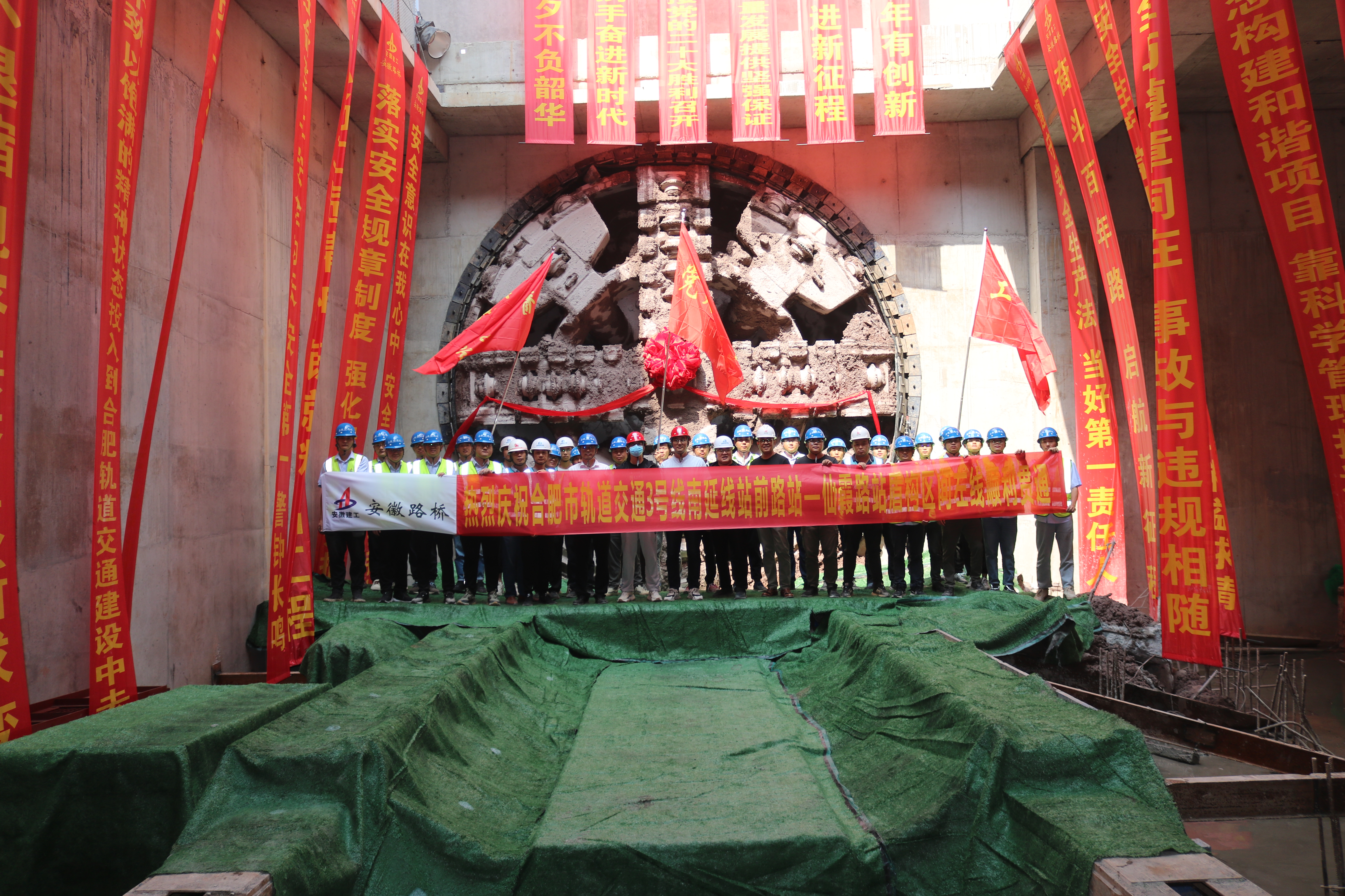 軌道交通3號線南延線TJ02標(biāo)是安徽省公路橋梁工程有限公司中標(biāo)承建第二個軌道交通項目。項目主要工程為站前路站、仙霞路站、站-仙區(qū)間、仙-青區(qū)間等土建和機電施工。目前,已完成車站主體封頂和區(qū)間貫通工作。自2020年9月份開工以來,弘揚“自立自強、勇往直前、一次成優(yōu)”的盾構(gòu)精神,不懼挑戰(zhàn)敢為人先、不畏困難任事?lián)?dāng),取得顯著成效。項目集體先后榮獲全國發(fā)明、實用新型等專利4項;省住建系統(tǒng)“學(xué)雷鋒示范點”稱號、省住建廳“紅色工地”稱號,全省工人先鋒號稱號。