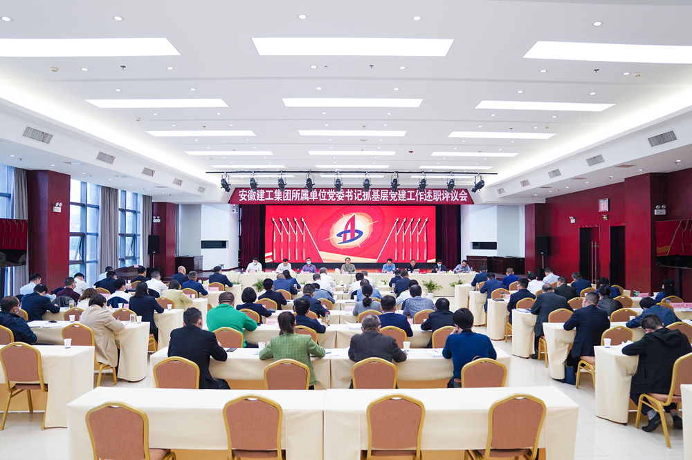 會上,安徽一建等9家單位黨委書記現(xiàn)場述職,其他單位書面述職,參會人員進行了評議。