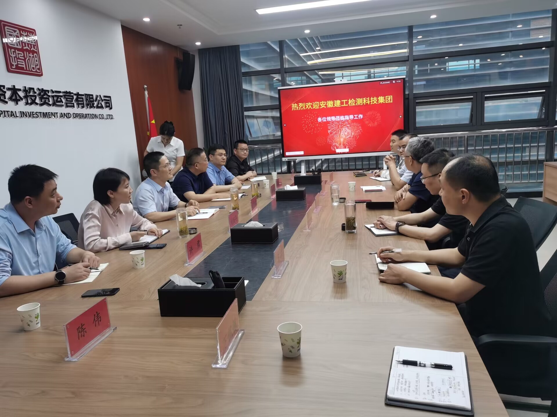 蕪湖市國有資本投資運營有限公司總經理方曉及有關負責同志,安徽建工集團市場開發與投資部劉鳳平,安建檢測領導郭楊及有關部門負責同志參加座談。