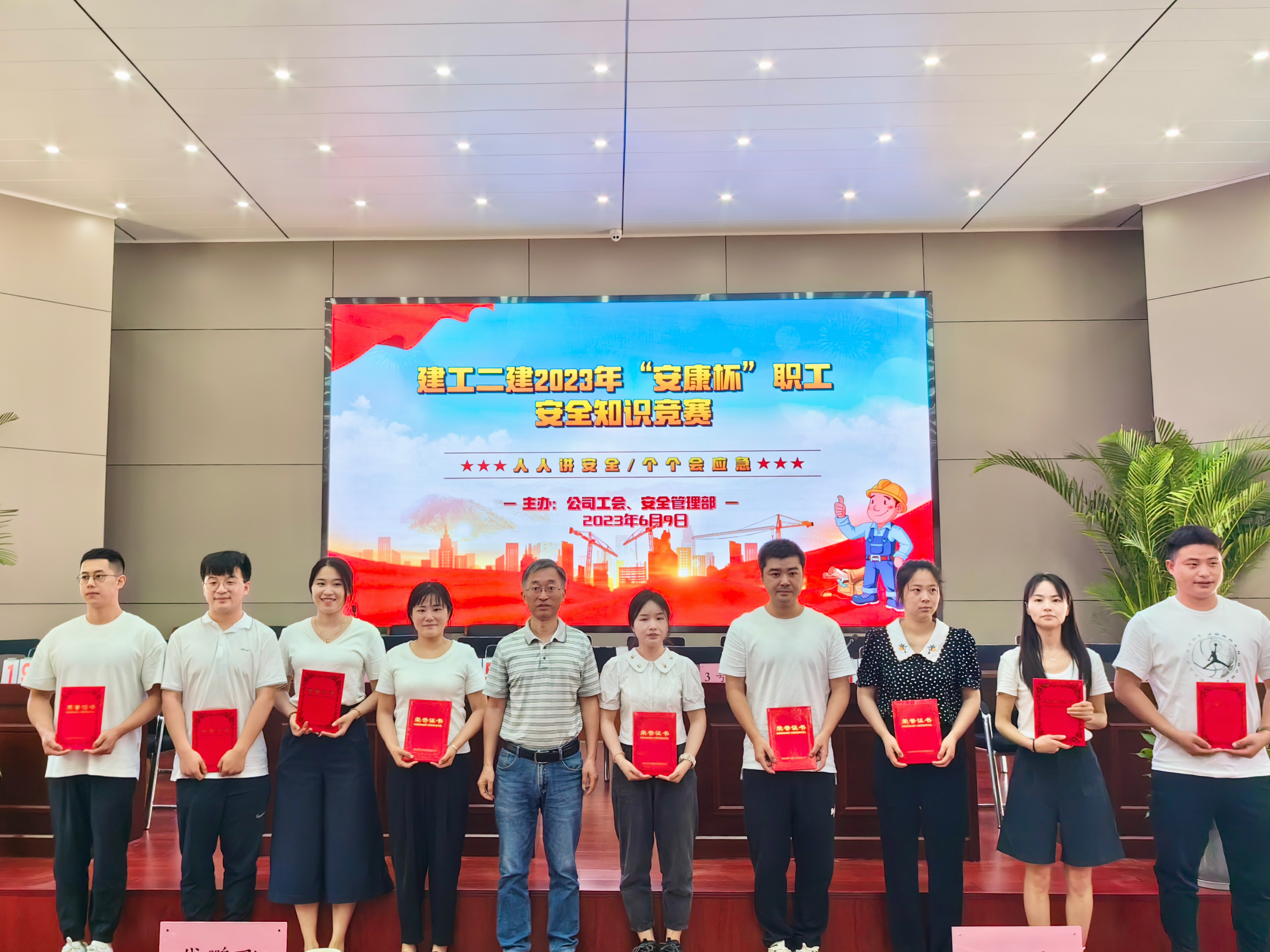 今年六月是第22個全國“安全生產月”,主題為“人人講安全,個個會應急”。6月9日上午,公司工會牽頭,與安全管理部聯合舉辦了建工二建2023年“安康杯”職工安全生產知識競賽活動。安全知識競賽的開展,旨在通過以賽促學、以學促用,大力弘揚“生命至上、安全為天”的安全理念,加強安全知識宣傳教育,切實增強廣大職工安全生產意識和安全管理知識水平。公司黨委副書記、工會主席王軍,副總經理代鵬飛出席活動。