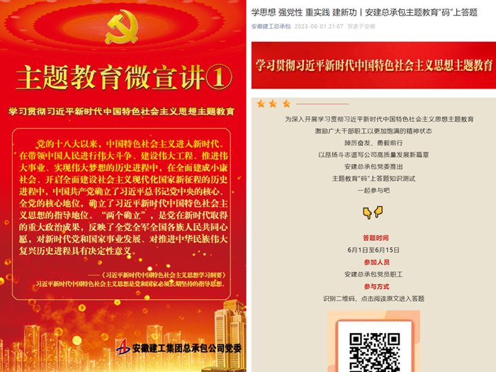 “怎么實現(xiàn)全黨思想、意志、行動的統(tǒng)一?最根本的就是用黨的基本理論武裝全黨。”學習貫徹習近平新時代中國特色社會主義思想主題教育開展以來,安建總承包黨委牢牢把握“學思想、強黨性、重實踐、建新功”總體要求,緊緊錨定主題教育目標任務,堅決貫徹落實習近平總書記關于主題教育一系列重要指示批示精神,緊密結合公司深化改革、轉型升級實際,以奮進姿態(tài)推動主題教育扎實開展。