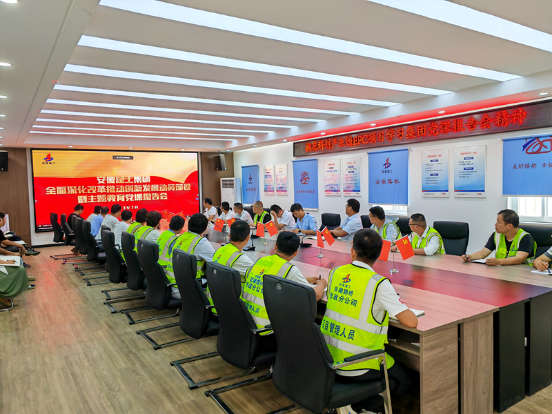7月2日,安徽建工集團召開全面深化改革推動創(chuàng)新發(fā)展動員部署暨主題教育黨課報告會,為推動大會精神落地見效,安徽路橋公司黨委緊密結(jié)合工作實際,第一時間組織傳達學習,迅速掀起學習宣傳貫徹熱潮。