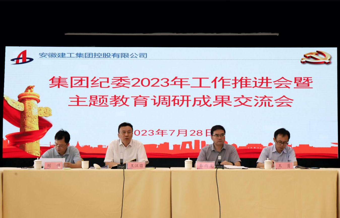 7月28日下午,集團紀委在安建大廈三樓召開2023年工作推進會暨主題教育調研成果交流會,控股公司黨委委員、紀委書記、監察專員王汪苗出席會議并講話。控股公司紀委委員,股份公司紀委副書記秦雨龍主持會議。