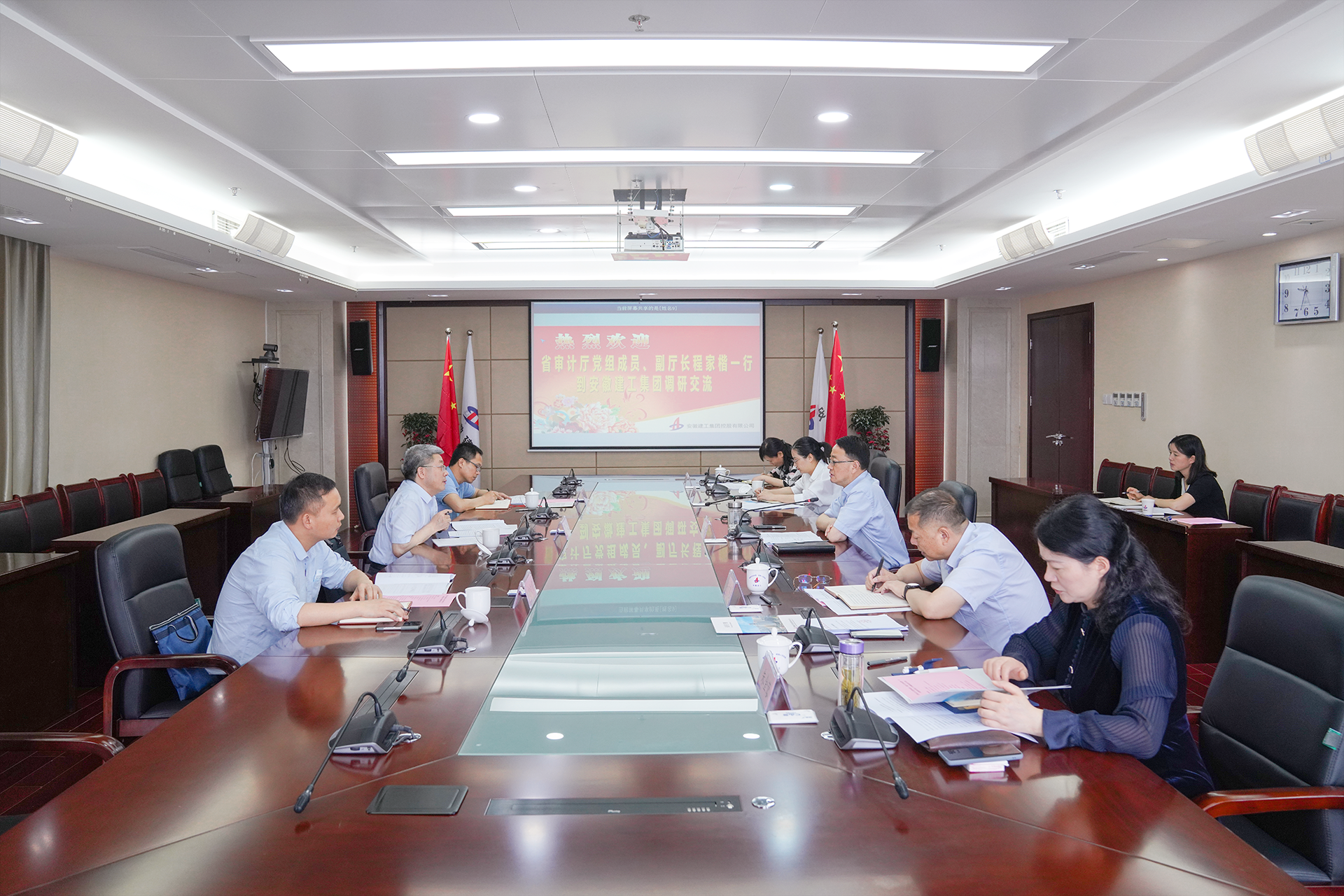 5月31日上午,安徽省審計(jì)廳黨組成員、副廳長程家楷一行到安徽建工集團(tuán)開展主題教育調(diào)研。集團(tuán)黨委書記、董事長楊善斌熱情接待并主持召開座談會。