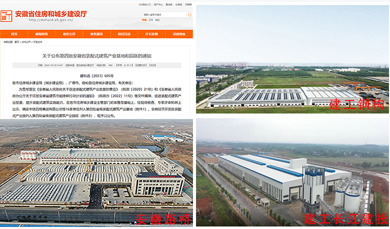 近日,省住建廳發(fā)布《關(guān)于公布第四批安徽省裝配式建筑產(chǎn)業(yè)基地和園區(qū)的通知》,集團公司所屬安徽省公路橋梁工程有限公司、安徽建工鋼構(gòu)智能制造有限公司、安徽建工長江建投建筑工業(yè)有限公司3家單位入選。