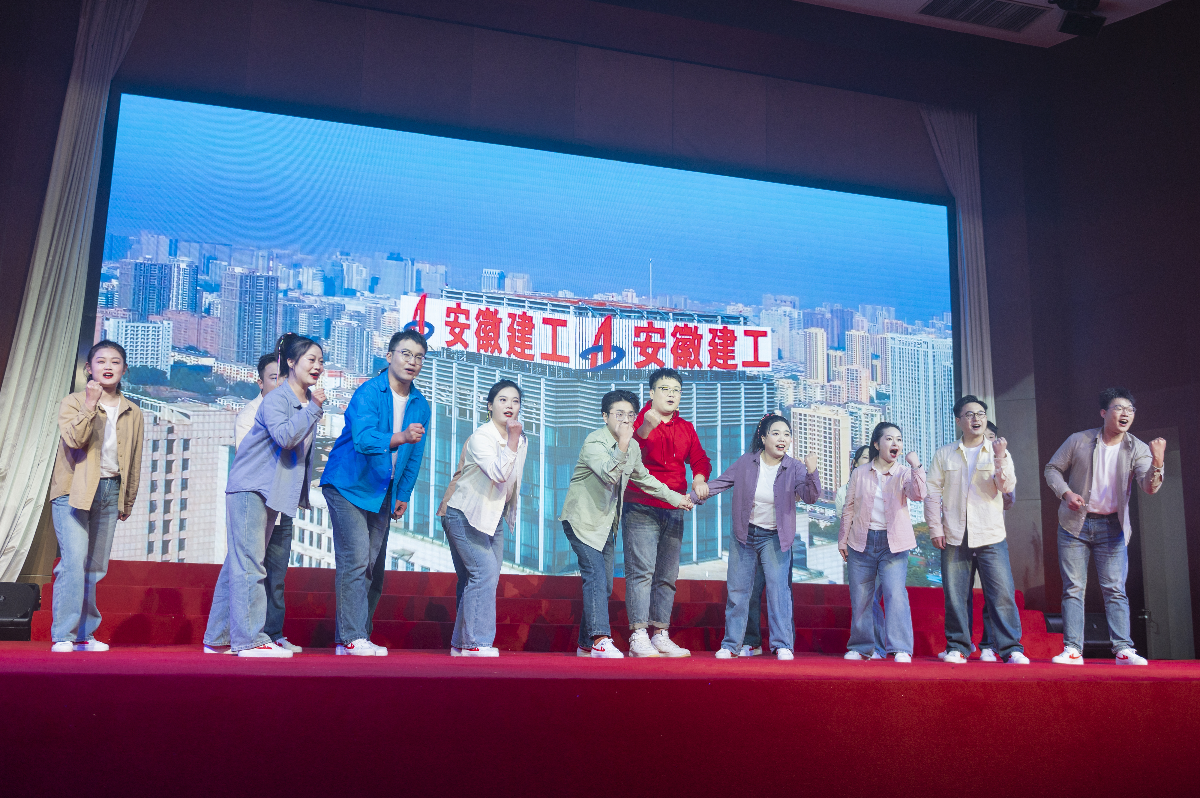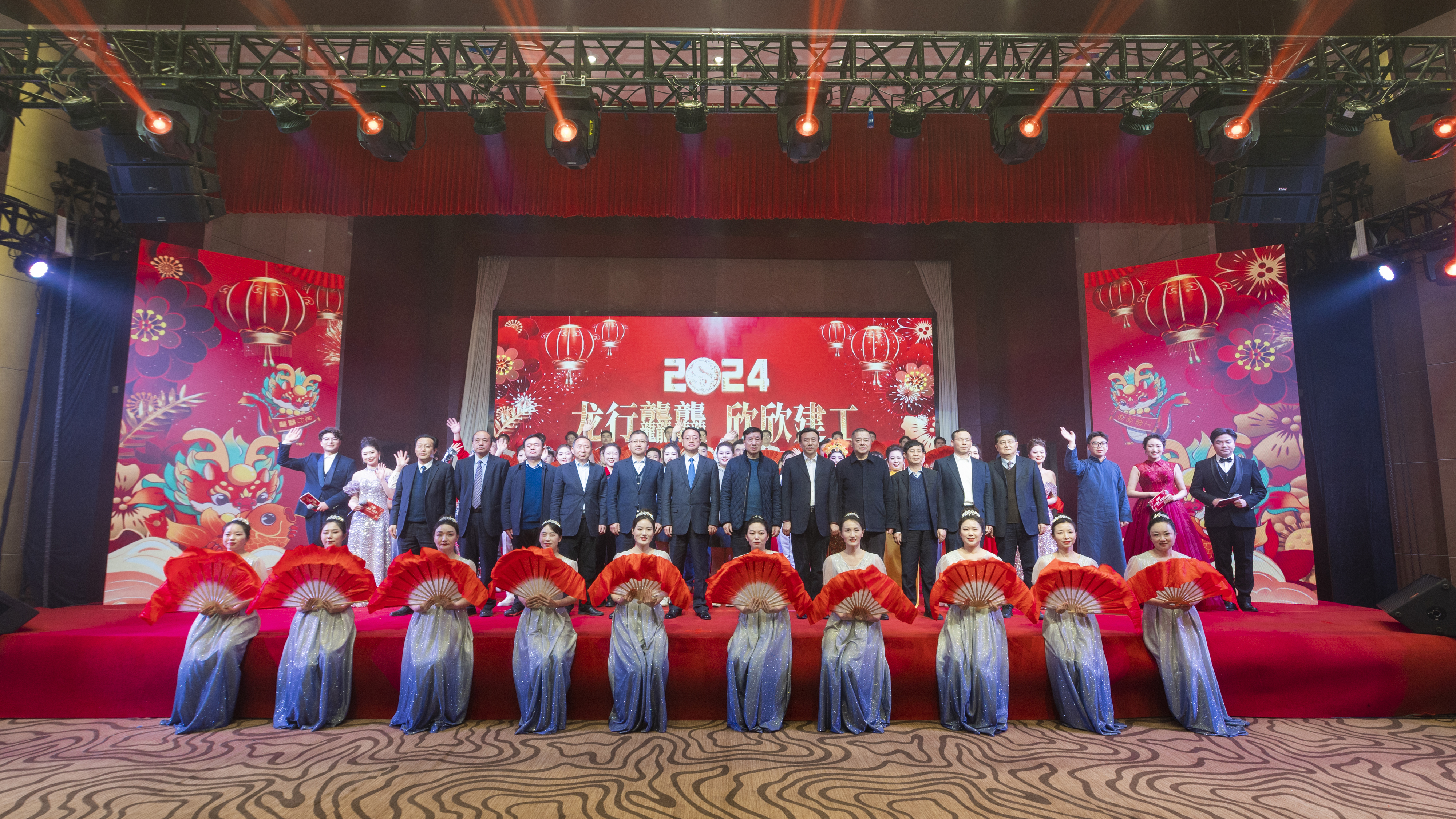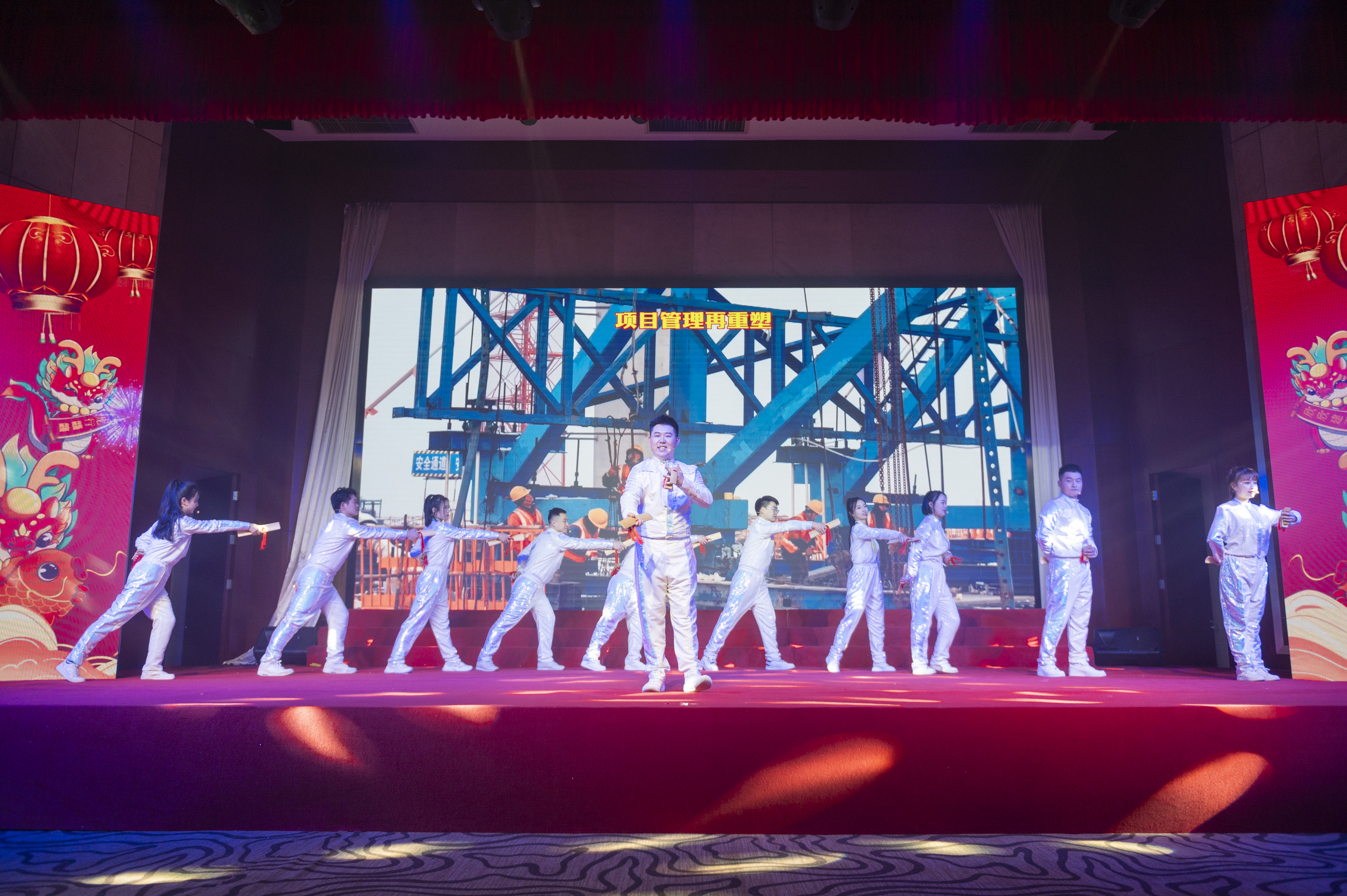 文藝匯演以“奮斗與發展”為主線,由“春天序曲”“2023 閃閃發光氣象萬千”“2024 欣欣向上前程朤朤”和“春天暢想”四個篇章組成。隨著集團2023年大事記的回顧和開場歌舞《中國喜事》的熱情演繹,晚會正式拉開帷幕,來自23家基層單位和集團機關的390余名演職人員輪番上演了群體朗誦、情景音舞、音樂快板、曲藝小品等17個節目,活力四射的舞臺、優美動聽的歌聲、婀娜多姿的舞蹈、驚喜不斷的表演,新年祝福和迎元宵猜謎語的精妙穿插,為現場觀眾呈現了一場接地氣、有情懷、蓬勃向上、年味濃郁的新春文化盛宴,生動展現了集團上下凝心聚力,奮力譜寫安徽建工高質量發展新篇章的良好精神風貌和向上向新向未來的干事創業激情活力。演出現場掌聲不斷,氣氛熱烈,臺上臺下匯聚成一片歡樂的海洋,晚會在大型歌舞《再一次出發》的歌聲中圓滿落下帷幕。