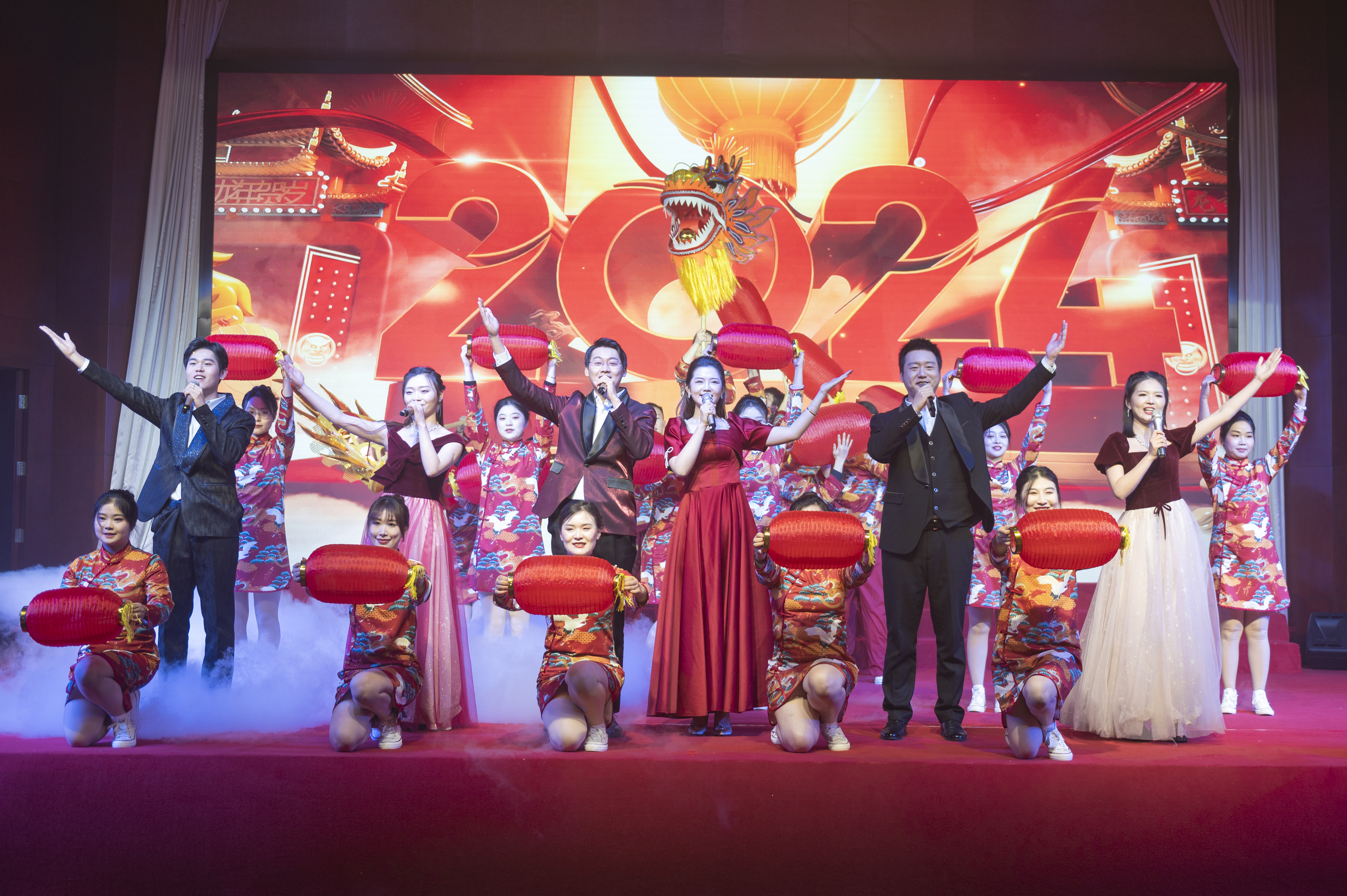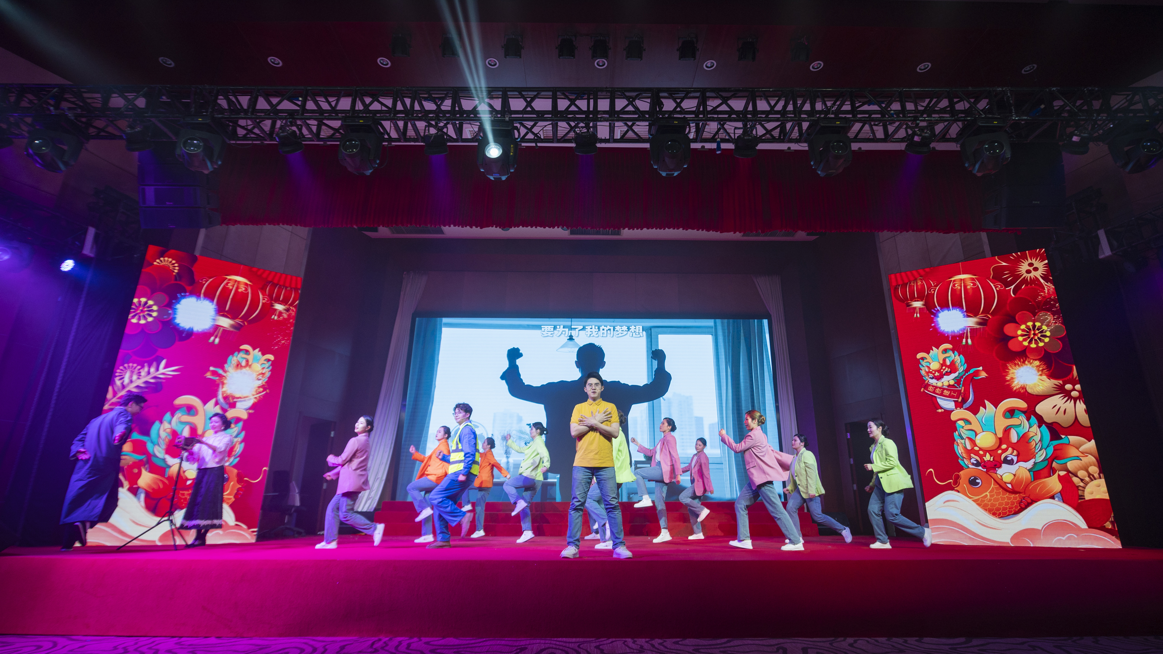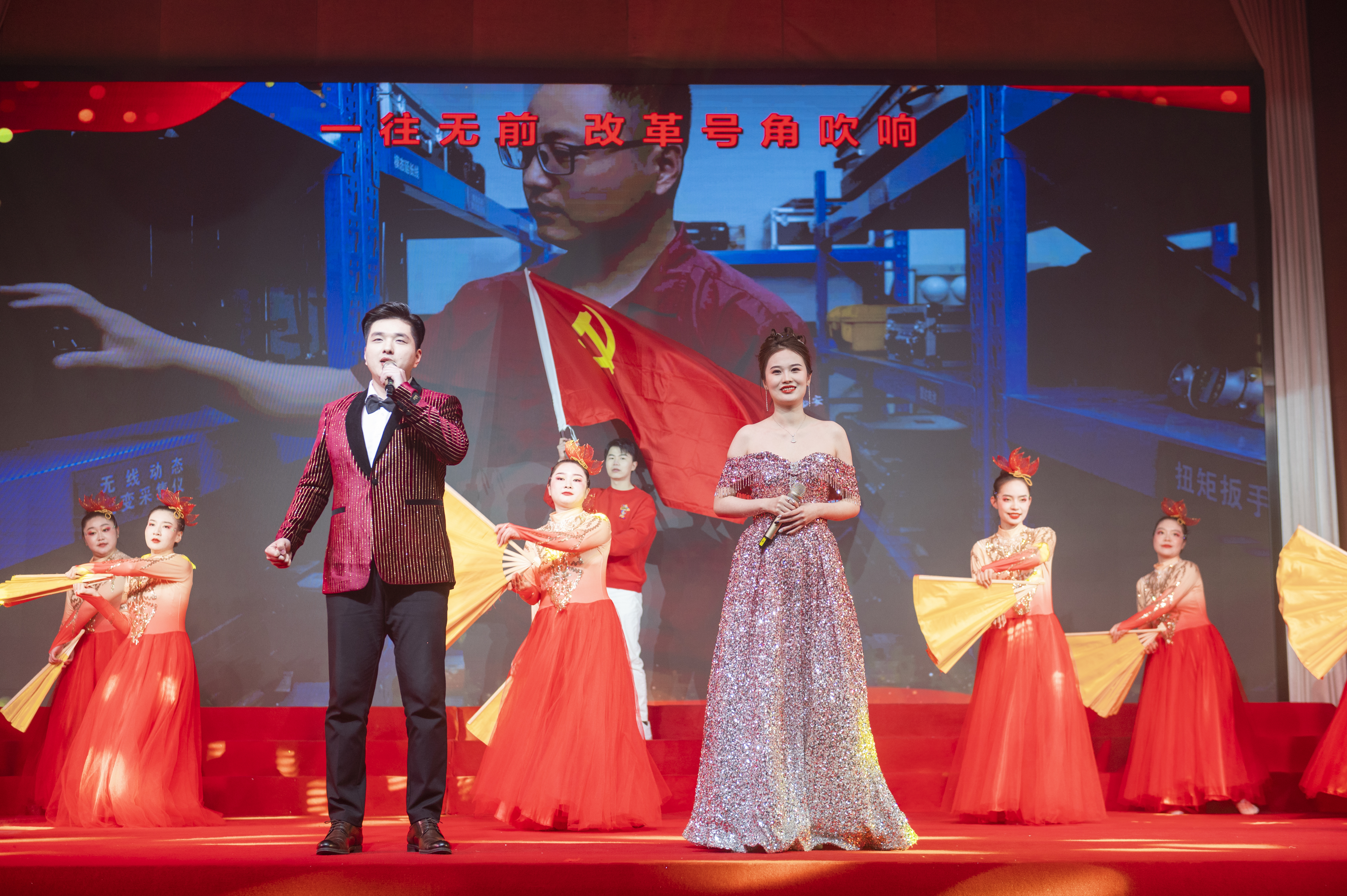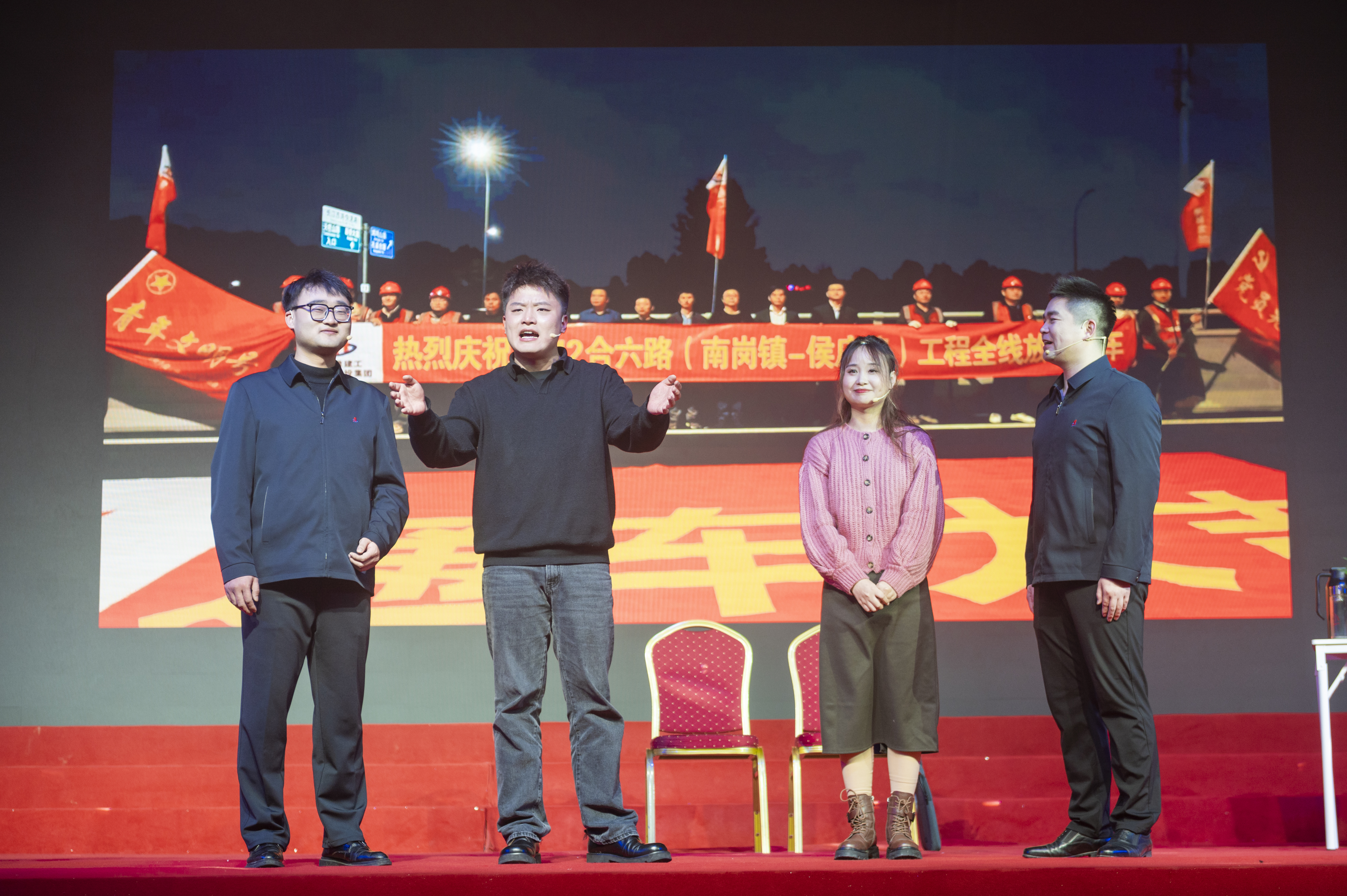文藝匯演以“奮斗與發展”為主線,由“春天序曲”“2023 閃閃發光氣象萬千”“2024 欣欣向上前程朤朤”和“春天暢想”四個篇章組成。隨著集團2023年大事記的回顧和開場歌舞《中國喜事》的熱情演繹,晚會正式拉開帷幕,來自23家基層單位和集團機關的390余名演職人員輪番上演了群體朗誦、情景音舞、音樂快板、曲藝小品等17個節目,活力四射的舞臺、優美動聽的歌聲、婀娜多姿的舞蹈、驚喜不斷的表演,新年祝福和迎元宵猜謎語的精妙穿插,為現場觀眾呈現了一場接地氣、有情懷、蓬勃向上、年味濃郁的新春文化盛宴,生動展現了集團上下凝心聚力,奮力譜寫安徽建工高質量發展新篇章的良好精神風貌和向上向新向未來的干事創業激情活力。演出現場掌聲不斷,氣氛熱烈,臺上臺下匯聚成一片歡樂的海洋,晚會在大型歌舞《再一次出發》的歌聲中圓滿落下帷幕。