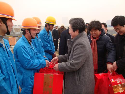 20日上午,安徽省委常委、省總工會主席王秀芳代表省總工會來到三建公司承建的安徽省總工會職工活動中心綜合樓工地,對項目人員進行慰問,了解農民工的收入情況,向農民工兄弟致以新春的問候并送上了賀歲大禮包。
