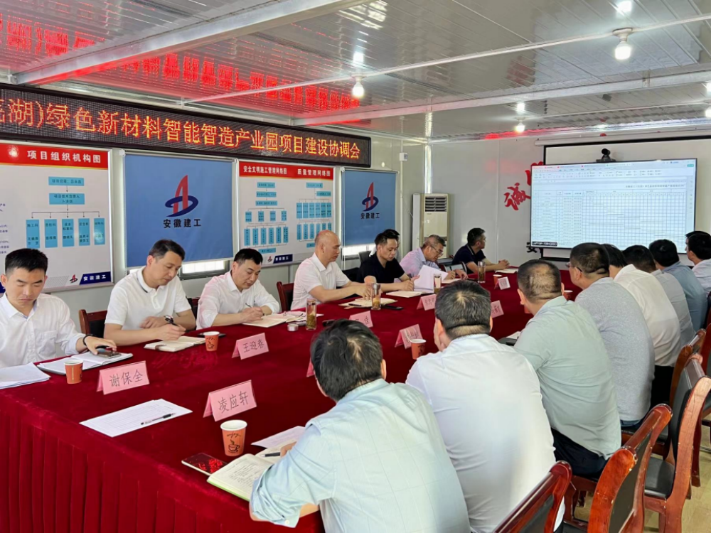 4月26日上午,建工股份副總經理、建工二建黨委書記、董事長朱忠明赴蕪湖綠色新材料智能智造產業園項目調研指導工作。建工建材黨委副書記、總經理張俊等隨同調研。