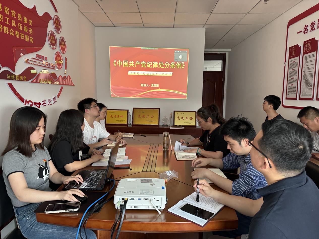 一分公司黨支部召開黨紀學習教育專題黨課,會議落實“第一議題”制度,集中學習習近平總書記關于黨的紀律建設的重要論述、習近平總書記在主持召開新時代推動西部大開發座談會時發表的重要講話精神。接著紀檢委員張善剛上“以嚴的基調全面加強紀律建設”主題黨課,進一步引導黨員干部牢固樹立正確的紀律觀念,持續將遵紀守紀融入日常工作,切實增強黨紀學習教育的思想自覺、行動自覺,做到言行一致,嚴守紀律底線。