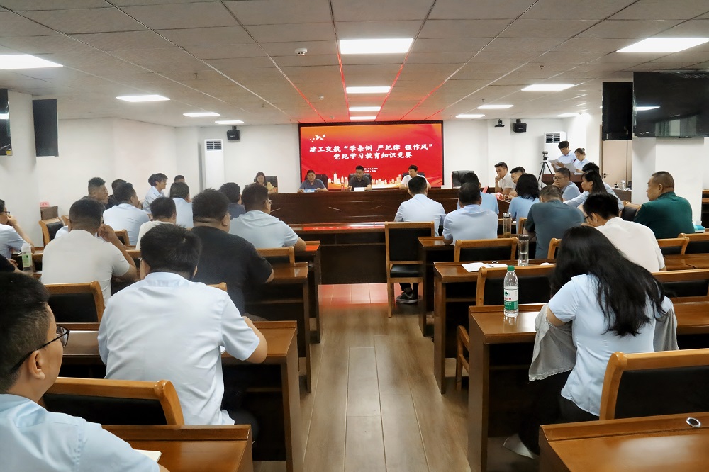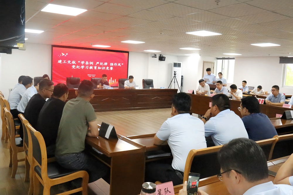 為深入推進(jìn)黨紀(jì)學(xué)習(xí)教育主題活動(dòng),教育引導(dǎo)黨員干部做到學(xué)紀(jì)、知紀(jì)、明紀(jì)、守紀(jì),以競(jìng)賽形式檢驗(yàn)學(xué)習(xí)成果,6月19日,建工交航開(kāi)展“學(xué)條例 嚴(yán)紀(jì)律 強(qiáng)作風(fēng)”黨紀(jì)學(xué)習(xí)教育知識(shí)競(jìng)賽。公司黨委副書(shū)記、總經(jīng)理李登祥出席活動(dòng),黨委委員、副總經(jīng)理、工會(huì)主席王黎明致辭。公司機(jī)關(guān)黨總支書(shū)記、財(cái)務(wù)資產(chǎn)部部長(zhǎng)李?lèi)?ài)平、紀(jì)檢室負(fù)責(zé)人李衍、團(tuán)委書(shū)記李鳳祥及各代表隊(duì)領(lǐng)隊(duì)、隊(duì)員共計(jì)50余人參與此次活動(dòng)。