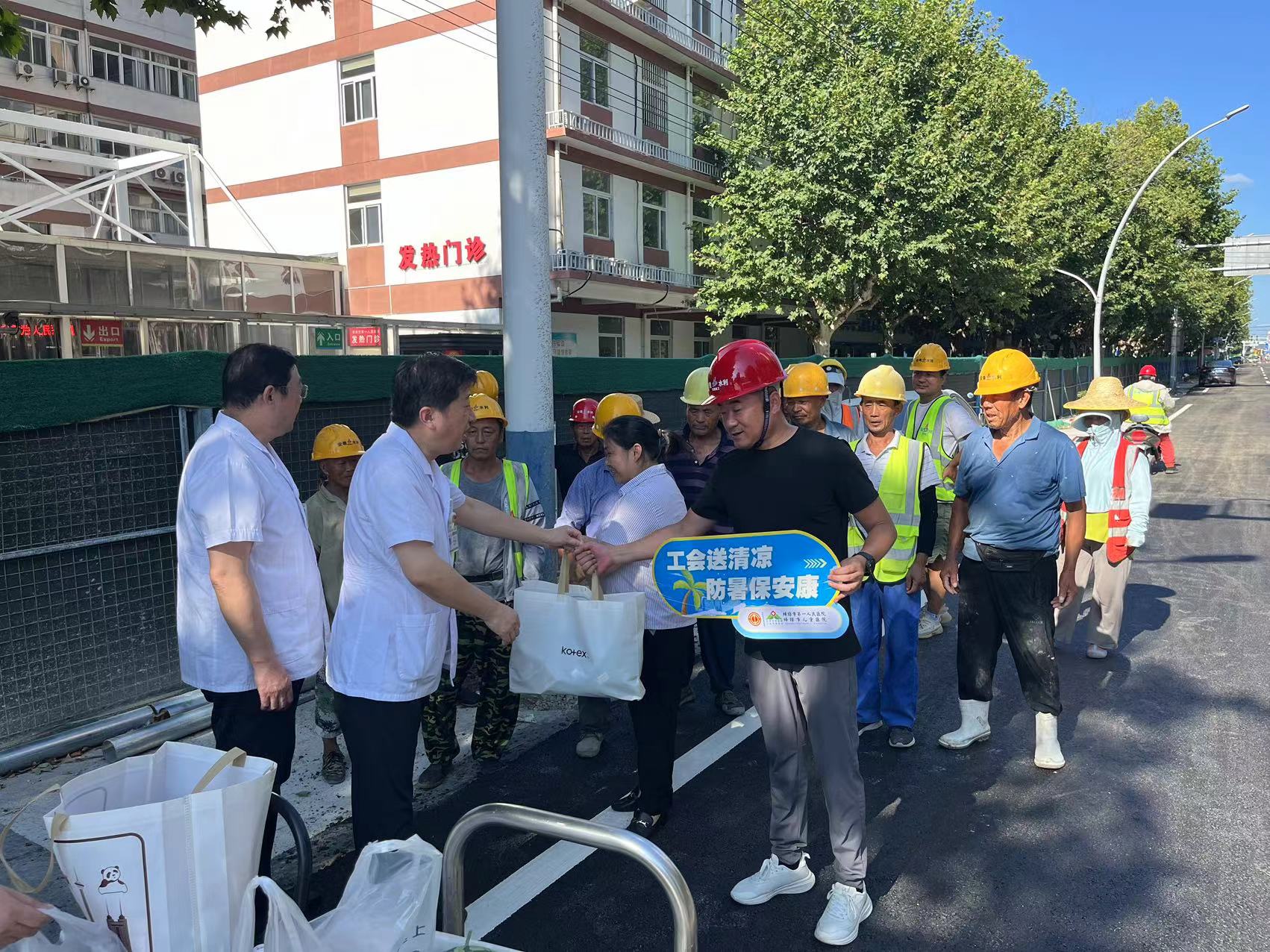 7月29日,蚌埠市第一人民醫院黨委書記袁長江帶隊到安徽水利蚌埠市城區道路提升改造項目現場開展“送清涼”慰問活動。