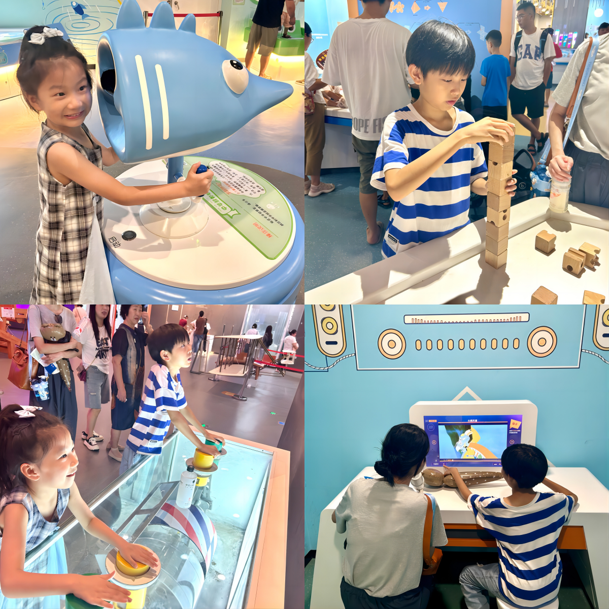 離開項目部,“小候鳥”們走進了安徽省科技館,先后參觀了“科學征程”“科技強國”“天地探秘”“量子探微”等主題展區,精美的展品、詳實的講解、沉浸式的交互體驗,讓孩子們在大飽眼福的同時領略了科技的魅力,過足了一把“科技癮”。