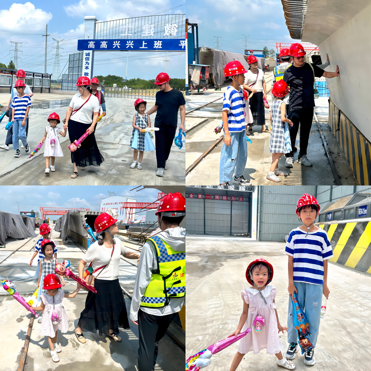 在父母的帶領下,“小候鳥”們戴上安全帽走進了“工地大課堂”,實地參觀了S18寧合高速04標項目施工現場、辦公區與生活區,“零距離”感受了父母的工作環境,深刻認識到了工作的艱辛不易,并為他們扎根一線、艱苦奮斗而感到驕傲與自豪。