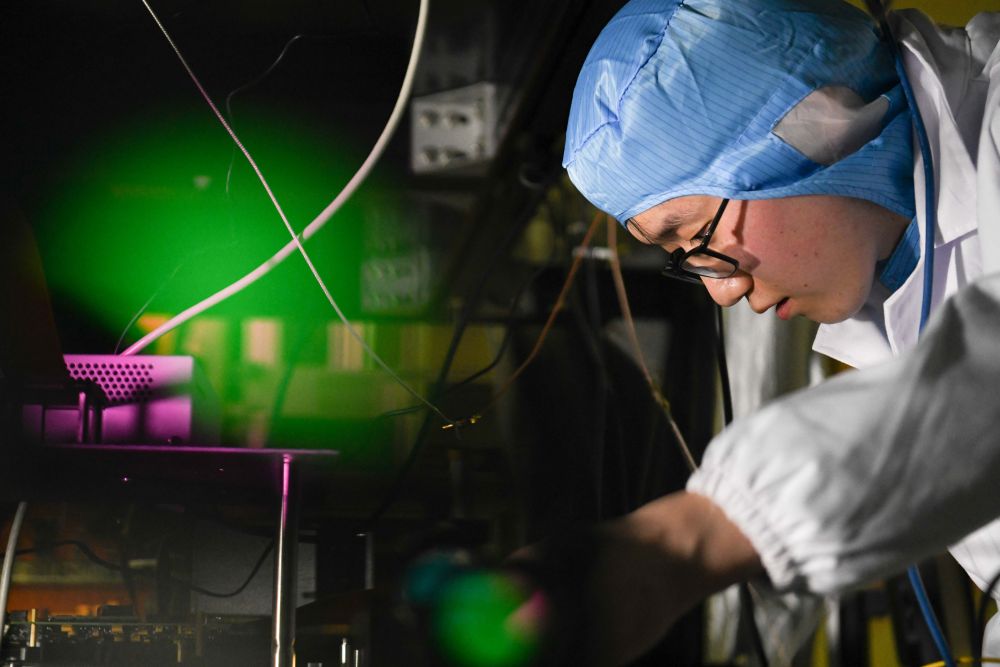 ??2022年1月31日,中國(guó)科學(xué)技術(shù)大學(xué)學(xué)生在中國(guó)科學(xué)院量子信息重點(diǎn)實(shí)驗(yàn)室做實(shí)驗(yàn)。