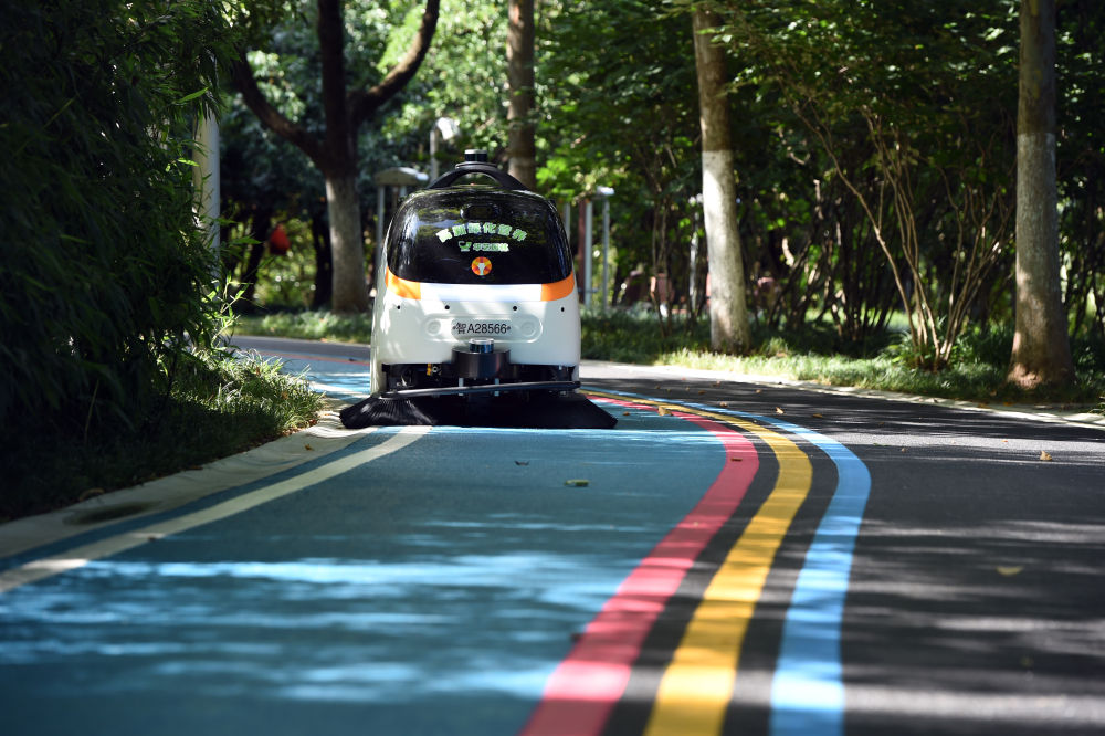??2022年6月24日,智能無(wú)人清掃機(jī)器人在安徽合肥一處公園清掃路面。