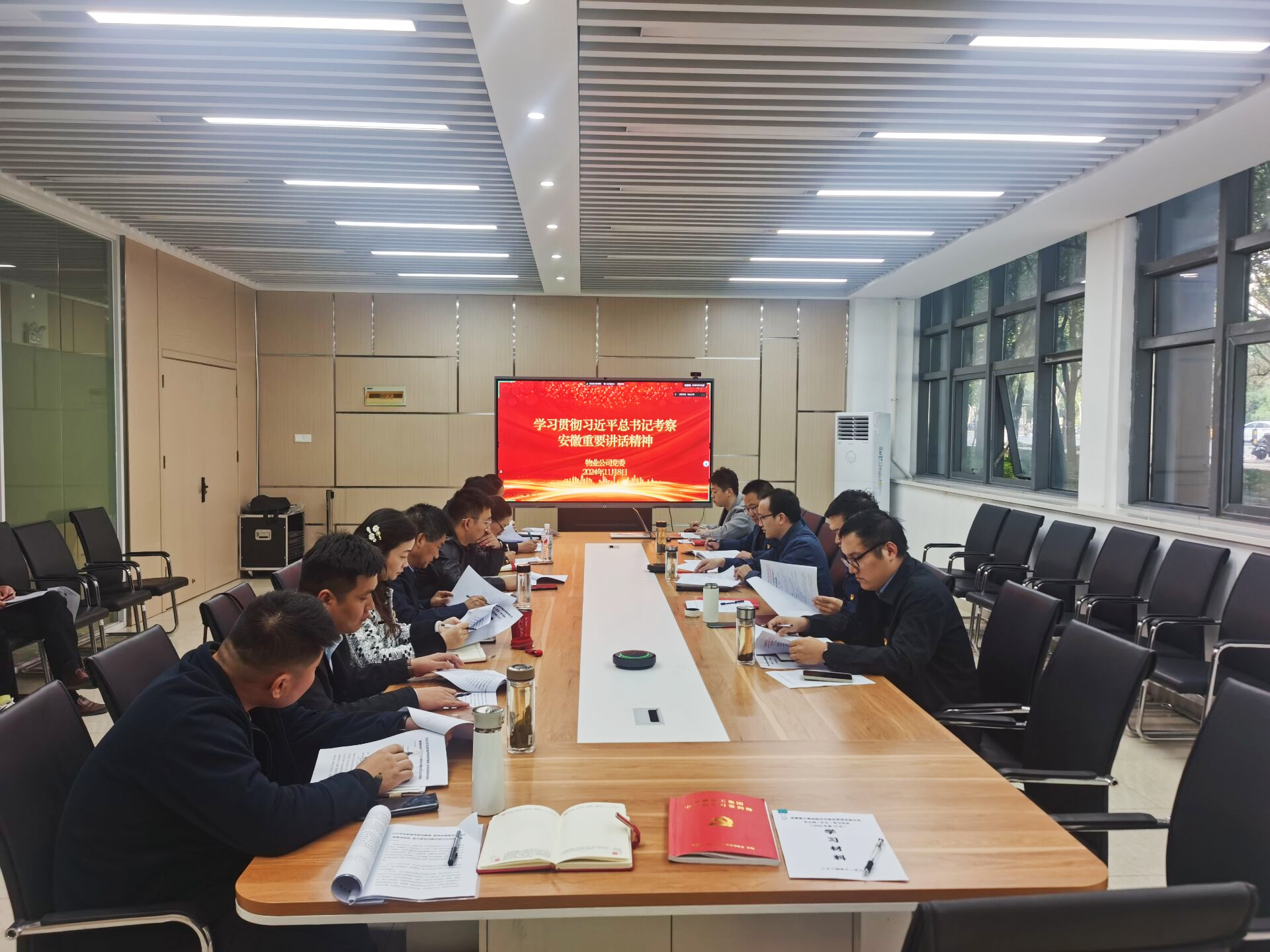 11月8日下午,物業公司黨委理論學習中心組召開(擴大)學習會議,專題學習研討習近平總書記考察安徽重要講話精神。物業公司黨委書記、總經理龍海健主持會議并講話。會議深入學習了習近平總書記考察安徽重要講話精神,學習傳達了省委書記梁言順在全省領導干部大會及省委理論學習中心組學習會議上的講話精神,以及建工集團黨委專題會議和黨委理論學習中心組專題學習研討會精神,并研究部署貫徹落實舉措。