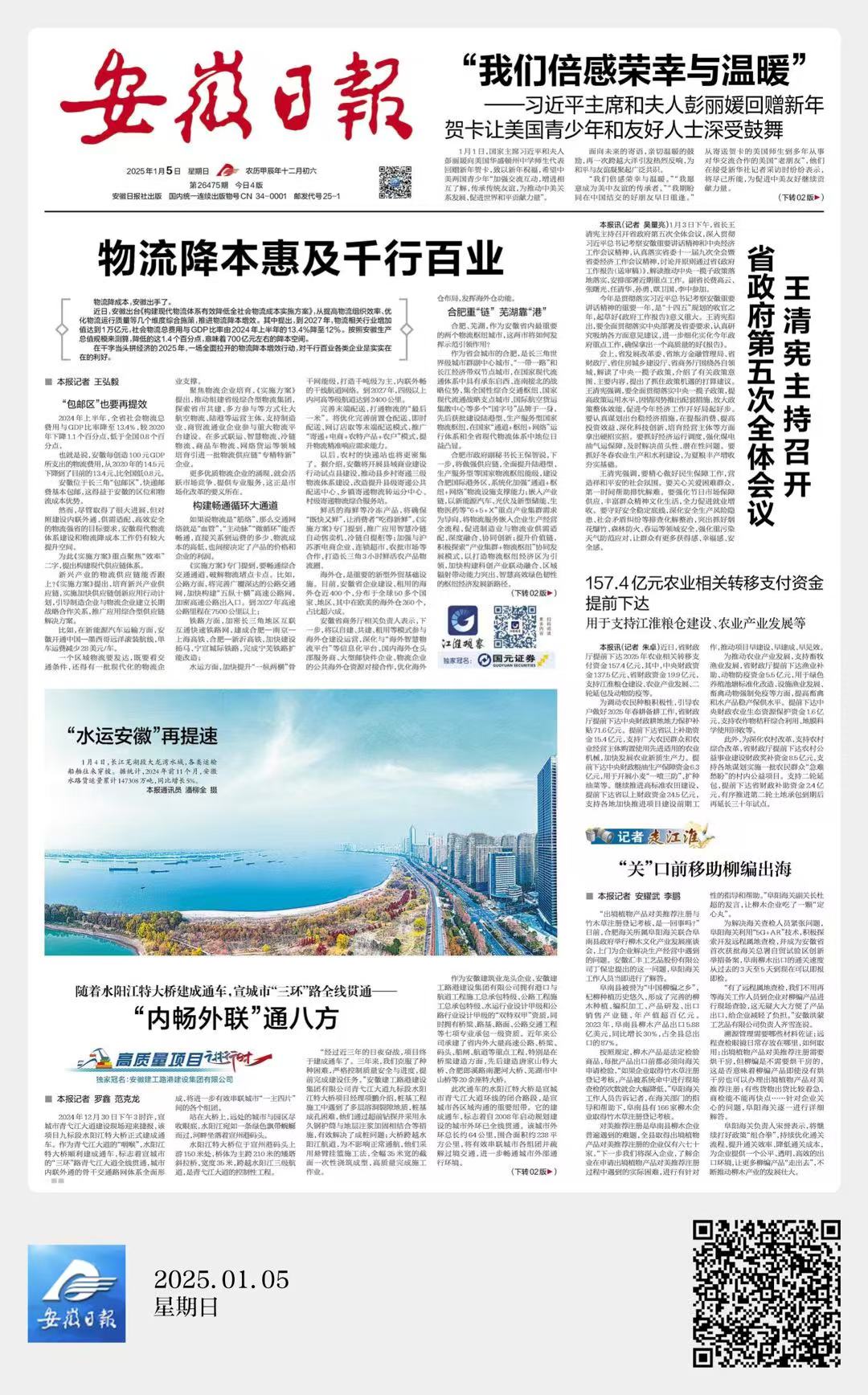 “原材料進場加上產品出貨,多的時候一天就有100多輛卡車進出,物流成本較大?!逼髽I負責人章偉告訴記者,隨著青弋江大道建成通車,企業的貨物可以更加便捷地上高速,顯著降低物流成本、提升物流效率,同時員工上下班出行也更加順暢。