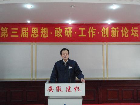 為加強(qiáng)思想政治研究工作,促進(jìn)各項工作的創(chuàng)新,推動企業(yè)又好又快發(fā)展,12月25日下午,安徽建機(jī)公司隆重舉辦了第三屆思想·政研·工作·創(chuàng)新論壇。公司黨委書記王愛國,總工程師、副總經(jīng)理潘友杰,總會計師汪元貴、總經(jīng)理助理、辦公室主任張育軍、黨工部主任宋繼芳、工會副主席陳煒共同出席了這次論壇,來自各單位、部門領(lǐng)導(dǎo)及參與交流人員30余人參加此次論壇。論壇由黨工部主任宋繼芳主持。