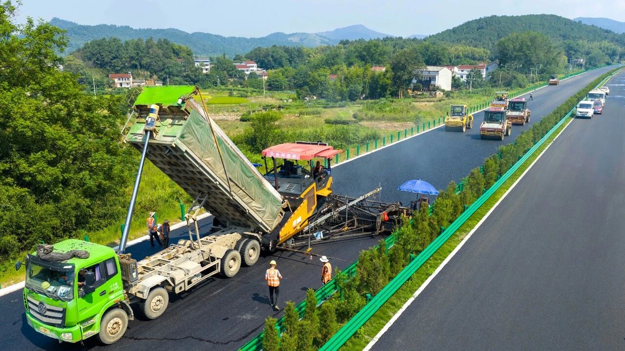 截至目前,項目已完成總投資的80%,全線隧道全部貫通,路面瀝青攤鋪完成約60%,正加速推進橋梁附屬工程及路面施工,預計10月完成附屬工程、11月進行交工驗收,確保今年12月如期通車。