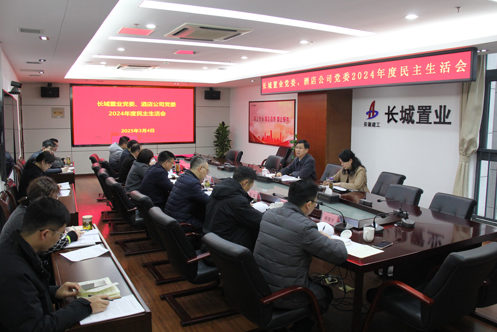 3月4日上午,長城置業、酒店公司黨委在安建大廈20樓第一會議室召開2024年度民主生活會。集團黨委第三督導組組長、建工控股黨委委員、副總經理陳仁虎,集團機關黨委書記朱金蓉到會指導并作點評講話。長城置業黨委副書記、總經理、酒店公司黨委書記、總經理王詩旵主持會議,兩家公司領導班子成員參加會議。