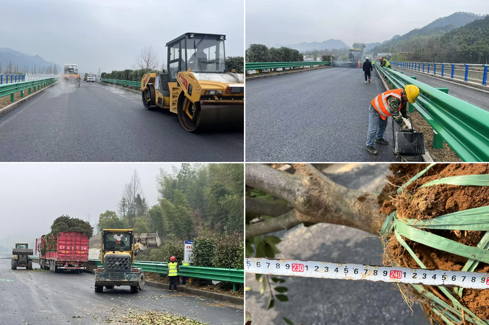 3月10日至11日,建工投資黟縣G530項目綠化工程試驗段施工及瀝青上面層試驗段攤鋪順利完成。