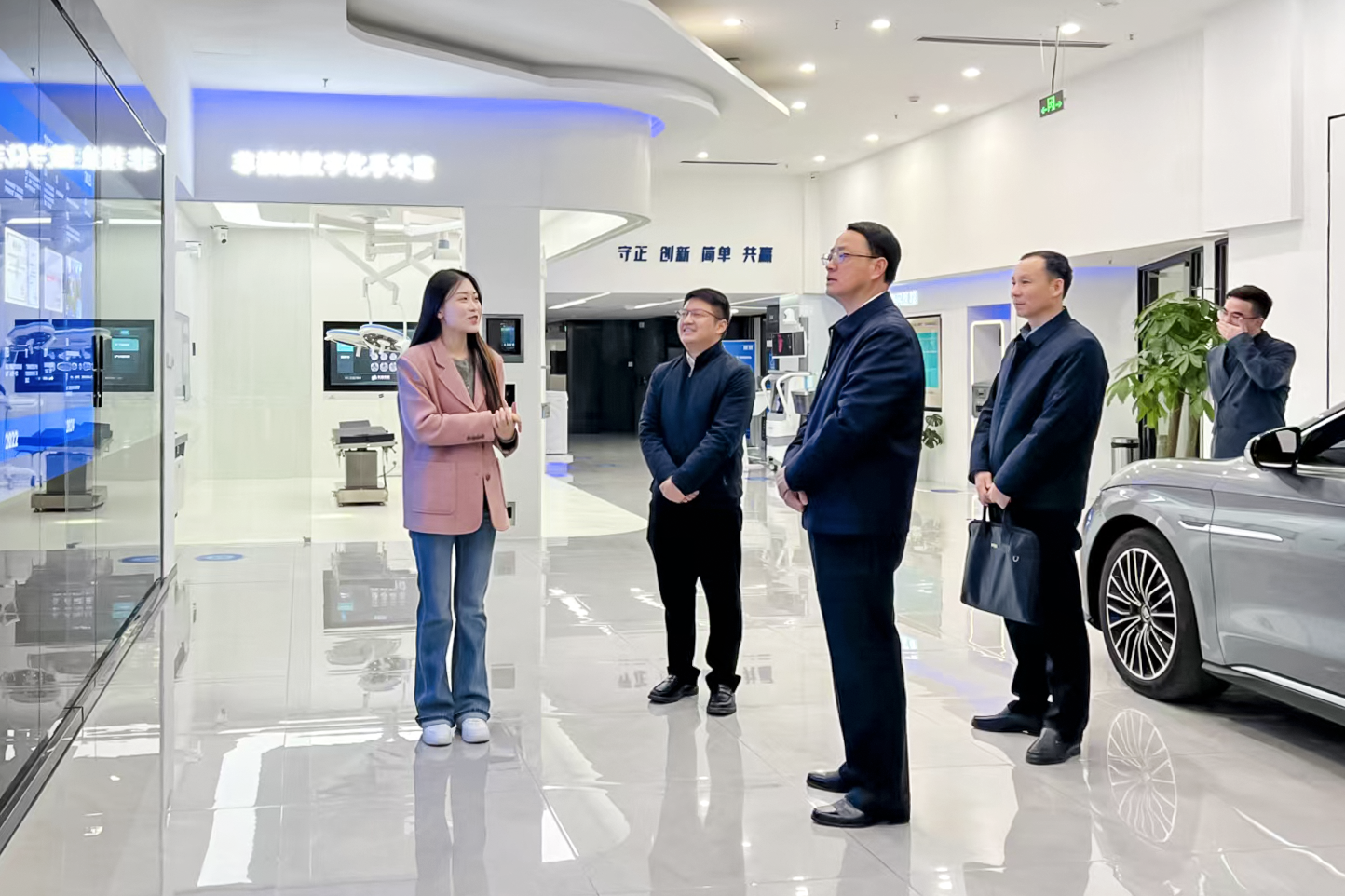 雙方圍繞科技創新在建筑及公共服務等領域的場景應用與合作進行深入交流。期間,楊善斌實地參觀了東超科技企業展廳,了解企業發展歷程、核心技術和產品等情況。