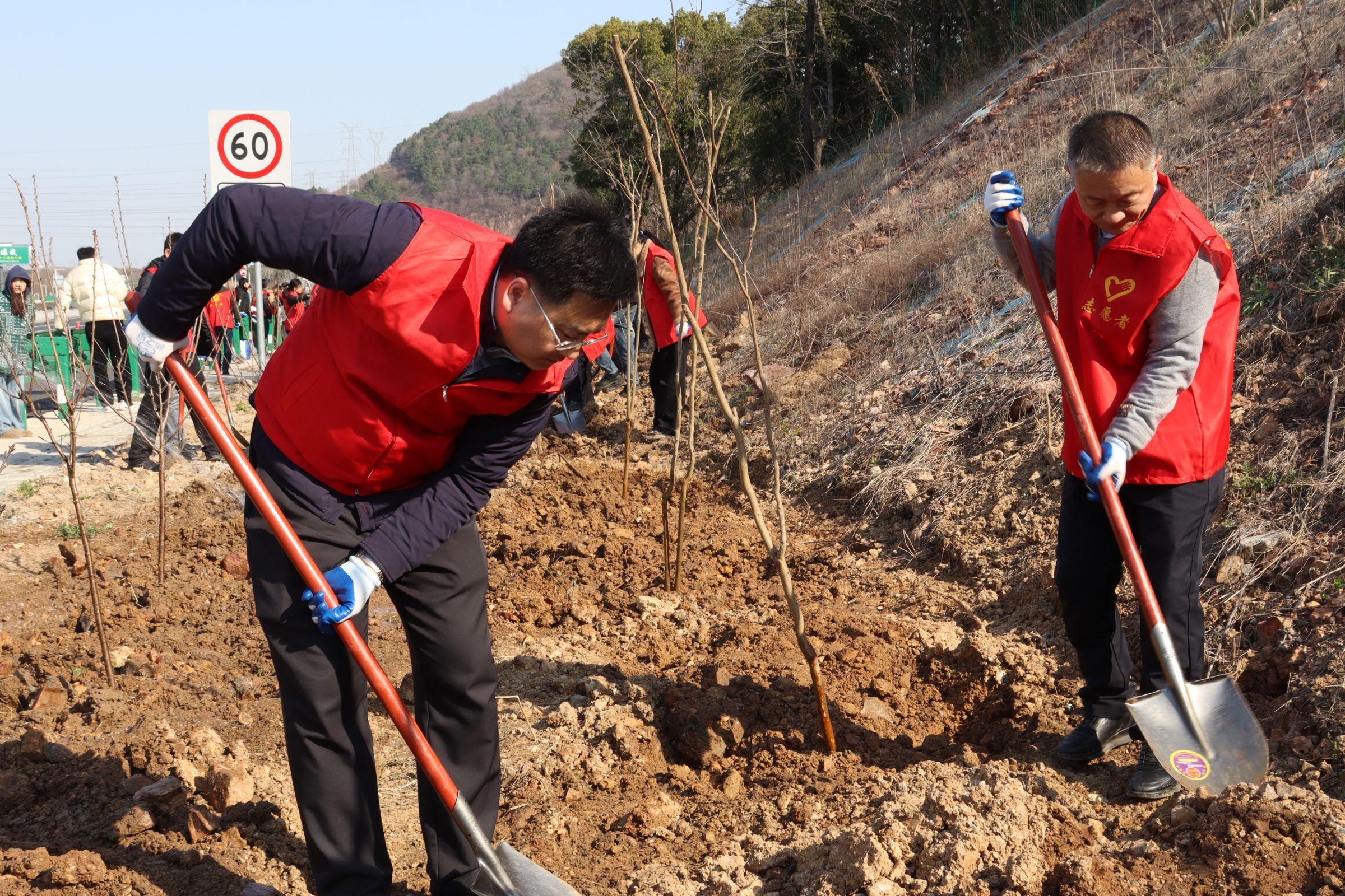 活動現場,參與者們分工明確、配合默契。鐵鍬揮舞,泥土翻飛;扶苗培土,樹苗挺立;提水澆灌,細心呵護,確保每一株樹苗都能茁壯成長。經過一上午的辛勤勞動,一棵棵新苗在春風中昂首挺立,為馬鞍山市生態建設注入新綠。