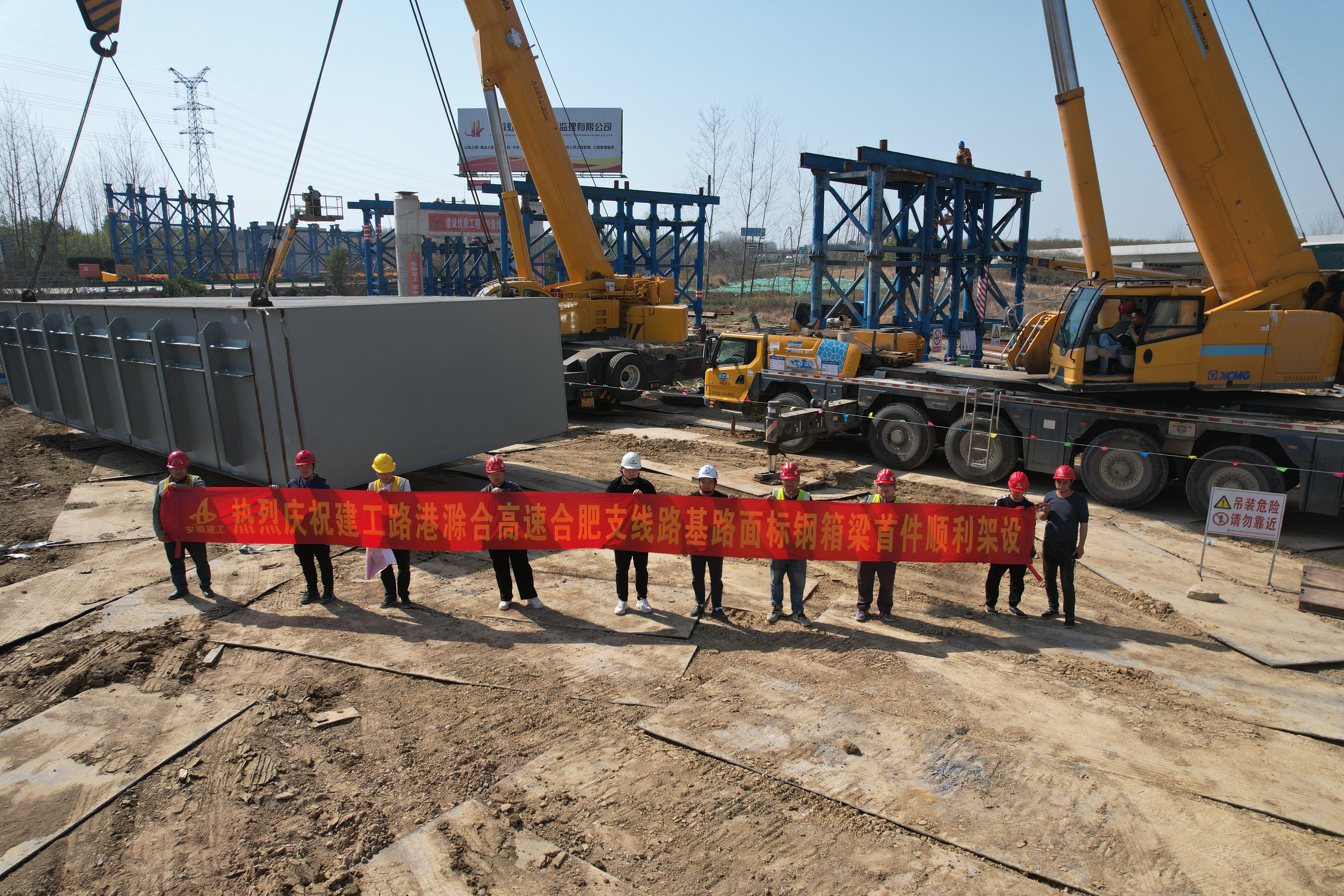 3月23日,建工路港滁合高速支線項目首片鋼箱梁順利架設,標志著項目上部結構施工取得了關鍵節點突破。