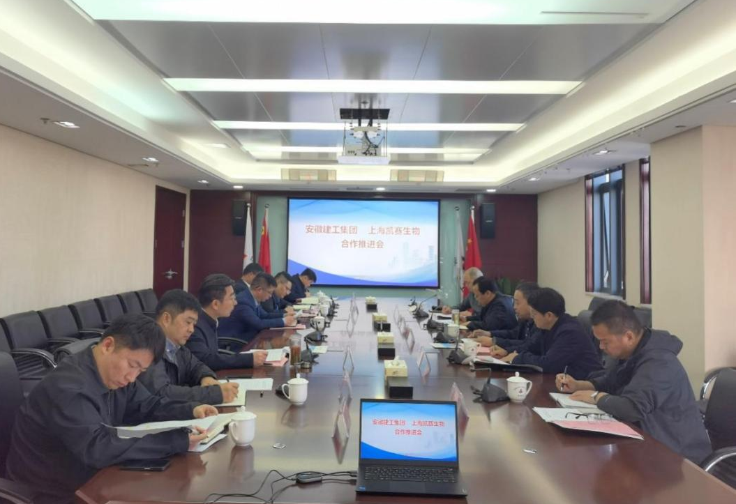 3月25日上午,安徽建工集團與上海凱賽生物新材料研發合作推進會在安建國際大廈27樓會議室召開。建工股份黨委副書記、副董事長、總經理李有貴,上海凱賽生物助理總裁沈華等出席會議。
