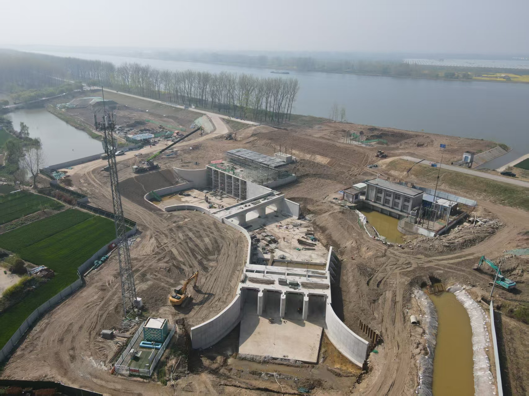 三沖二站是項目泵站工程重要組成部分,位于淮北大堤五河縣境內原三沖東涵處,在原址基礎上進行擴建。建設內容包括進出水渠、出口防洪閘、抽灌涵及其他附屬工程等,設計功能為抽排、自排及抽灌,抽排流量18.95m3/s,自排流量54.23m3/s,共設6臺機組,總裝機1890kW,為中型泵站。目前,三沖二站泵室流道層、控制段高程19.5米以下、穿堤涵1#-7#洞身及出口翼墻等部位已完成混凝土澆筑,正全力推進泵室電機層鋼筋綁扎、模板制安以及堤防土方回填作業。
