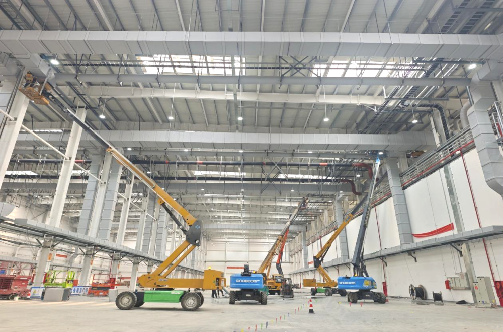 2024年5月,臨湖智能制造產業園項目中標即開工,進場24天沖出“正負零”,40天完成11萬根樁基施工,112天完成61萬平米鋼結構封頂,177天具備首批工藝進場安裝條件。從機械轟鳴的建設工地到拔地而起的現代化廠房,項目團隊努力克服工程體量大、工期緊、標準高、工序多、工藝繁等多重考驗,順利完成了土方、樁基、混凝土結構柱、鋼結構封頂、工藝設備進場安裝等關鍵節點。