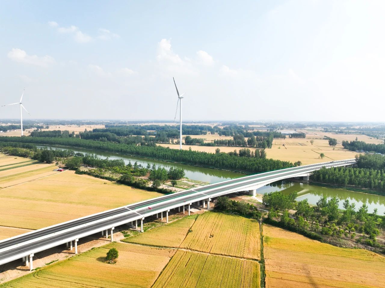 從地理空間意義上,這條即將于7月通車的新路,將進一步完善安徽省高速公路網(wǎng)絡(luò),推進長三角一體化,成為助力皖北振興的重要動力。項目中34座橋梁橫跨古運河遺址與礦區(qū)鐵路,6座鋼箱梁橋頂推施工攻克“不斷交通、不限車速”的難題,路基填挖土方量超千萬方,無一不在訴說著項目的含金量。
