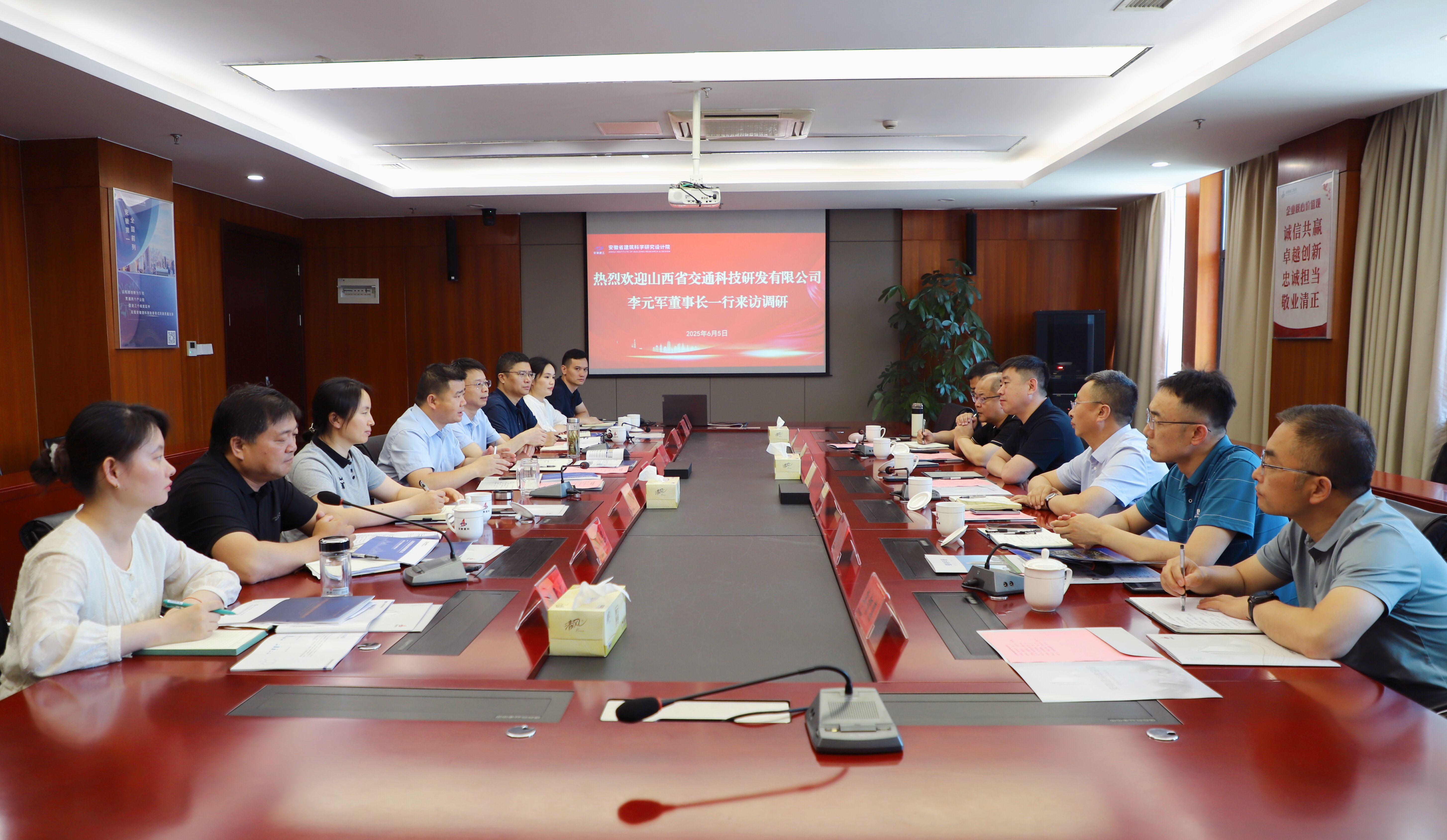 6月5日上午,山西省交通科技研發有限公司(以下簡稱“山西交科”)黨委書記、董事長李元軍一行到訪安徽省建科院,院黨委副書記、院長劉春雷熱情接待,并舉行工作會談。