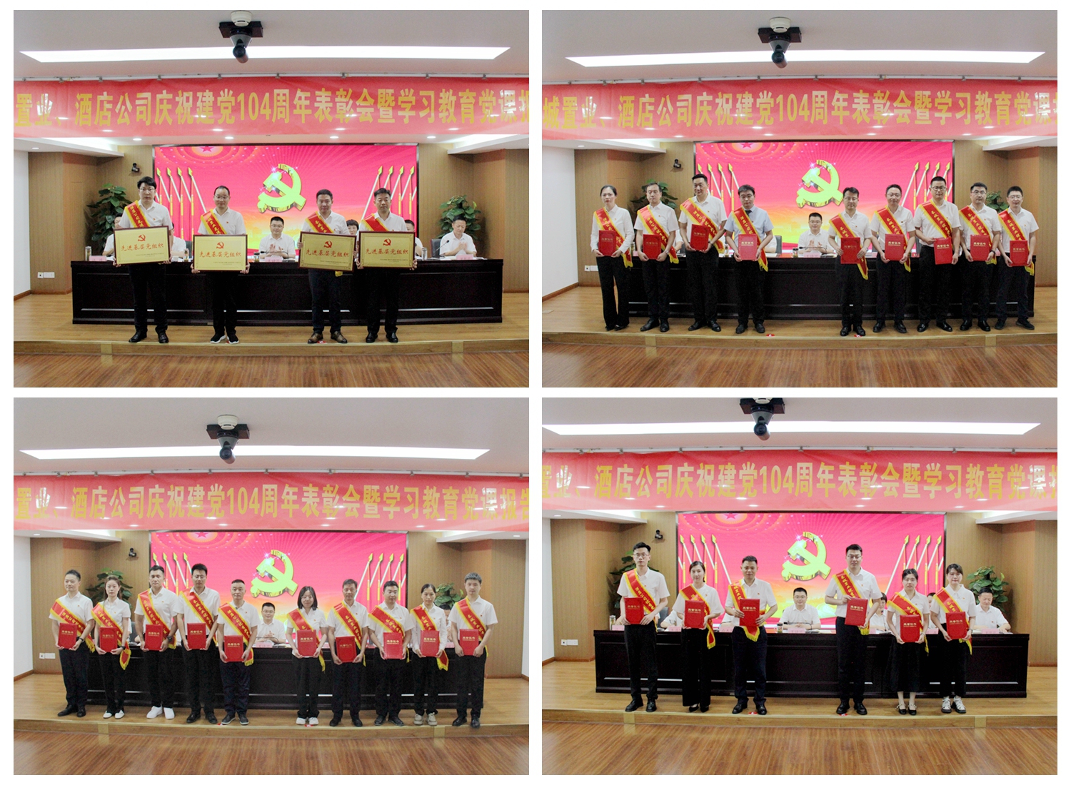 會議傳達學習了集團黨委慶祝建黨104周年表彰會暨學習教育黨課報告會精神,宣讀了長城置業、酒店公司獲得上級黨委表彰的先進集體和優秀個人名單。