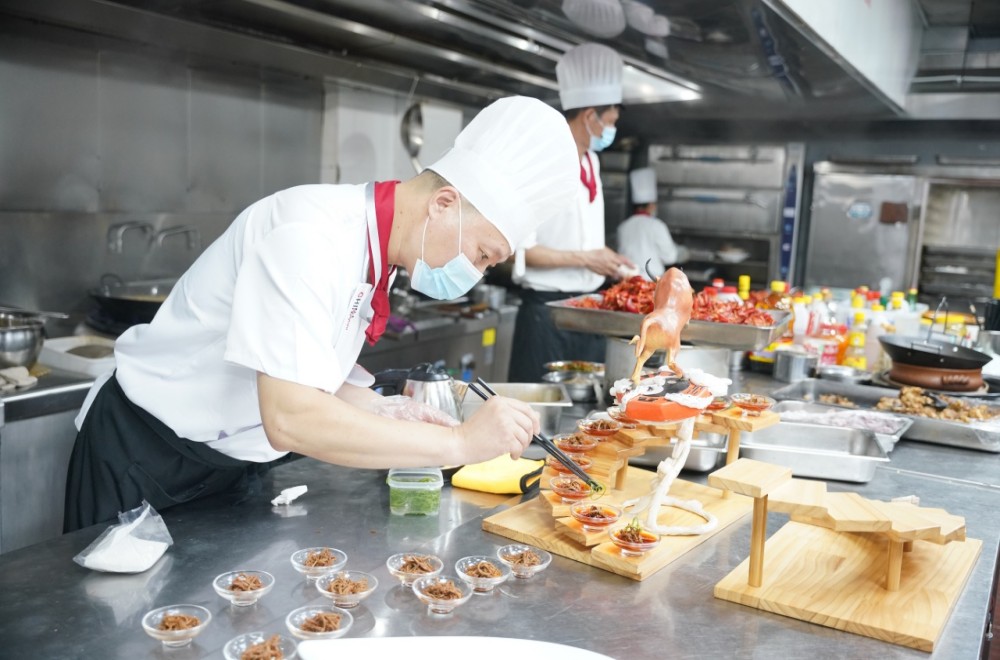 本次大賽以“廚間展絕技 匠心筑‘味’來”為主題,采用“酒店組+團餐組”雙賽道模式,涵蓋了中式烹調、傳統(tǒng)面點、創(chuàng)意融合等多個項目,從食材選擇、刀工處理、火候掌控到菜品造型、口味創(chuàng)新,全方位考驗著廚師們的專業(yè)素養(yǎng)和創(chuàng)新能力,實現(xiàn)“以賽促學、以賽促練”的最終目的。