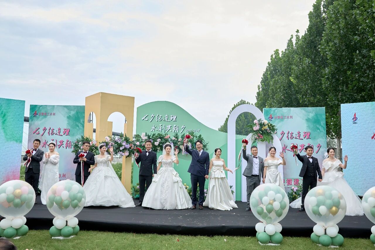 王勝利在證婚詞中深情寄語,表示這場集體婚禮既是公司為奮斗者量身定制的“幸福履約書” ,更是企業與職工共享發展成果的生動體現。希望新人們在未來的日子里永沐愛河、幸福美滿,如我們鑄就的大壩般堅不可摧,如我們疏通的江河般包容通達,如清澈的活水般永葆生機,既成為彼此溫暖的依靠、也成為對方事業上最堅定的支持者,不僅建設好小家、更要共同為我們這個“大家”——安徽建工水利的高質量發展貢獻青春與智慧。