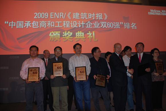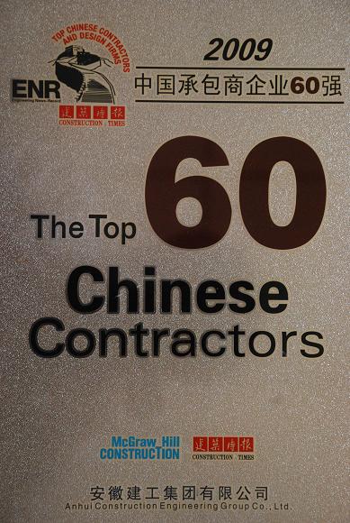 2009年11月5日,第六屆ENR/《建筑時報》中國承包商和工程設計企業(yè)“雙60強”頒獎典禮在重慶隆重召開。會上再傳喜訊:安徽建工集團再度榮登中國承包商60強,排名第32位,比2008年上升6位,這是安徽建工繼榮獲“中國企業(yè)500強”“全球最大國際承包商225強”之后的又一項榮譽。