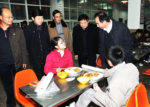 隨后,程廳長(zhǎng)一行在校領(lǐng)導(dǎo)的陪同下,實(shí)地察看了校園環(huán)境、實(shí)訓(xùn)場(chǎng)地和設(shè)施,并叮囑學(xué)校要重視和確保學(xué)生實(shí)習(xí)安全。程廳長(zhǎng)還深入到學(xué)生宿舍和學(xué)生餐廳視察,并就助學(xué)金發(fā)放和伙食等問題與學(xué)生進(jìn)行交談。
