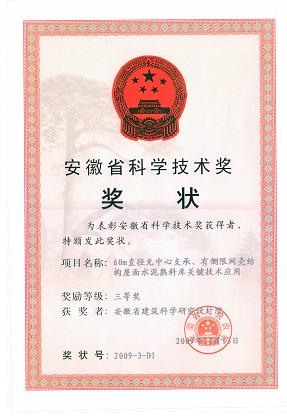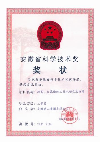 日前,安徽省人民政府發(fā)布2009年度安徽省科學(xué)技術(shù)獎勵的決定,集團(tuán)公司系統(tǒng)三個科研項目榮獲“安徽省科學(xué)技術(shù)獎”三等獎,分別是:“超高、大幕墻施工技術(shù)研究及應(yīng)用”(完成單位:安徽省第一建筑工程公司、安徽建工集團(tuán)有限公司)、 “60m直徑無中心支承、有側(cè)限網(wǎng)殼結(jié)構(gòu)屋面水泥熟料庫關(guān)鍵技術(shù)應(yīng)用”和“木質(zhì)素磺酸鹽改性劑的研究和應(yīng)用”(完成單位:安徽省建筑科學(xué)研究設(shè)計院)。