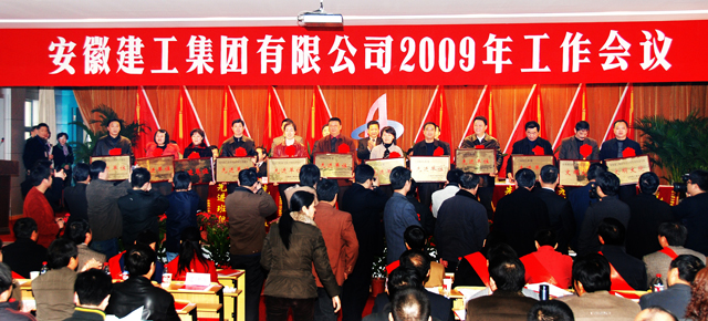 ACEG Working Conference 2009 was held solemnly on February 15, 2009. Vice-governor of Anhui Province Mr. Huang Haisong, Director of State Property Management Commission of Anhui Province Mr. Gui Jianpin, Deputy Inspector of Department of Construction of Anhui Province Mr. Wang Maoxin came to congratulate the conference and gave important addresses. The leaders of ACEG, the managers from ACEG subsidiaries and constituent firms, more than 800 staffs attended the conference. The conference was hosted by Mr. Li Bing, the vice president ACEG.