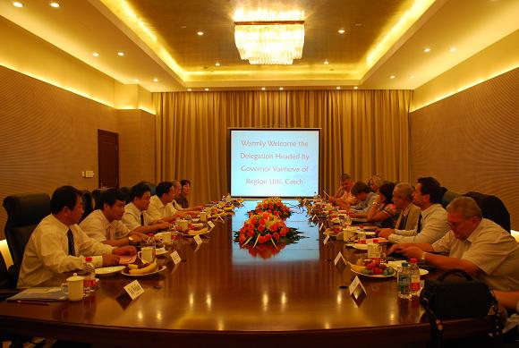 In addition, President Hu participated in the signing ceremony of  Friendly Relationship Establishment Agreement between Anhui province and Region Usti presided by Mr. Wang Sanyun, Governor of Anhui province and  Ms. Jana Vanhova, Governor of Region Usti, Czech. President Hu was also present on the occasion when Ms. Hua Jianhui and Mr. Tang Chengpei, the two vice governors of Anhui province entertained the delegation from Czech .