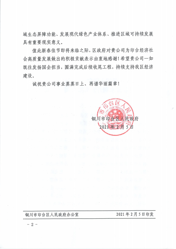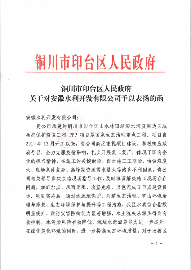 Recently, ACEG Water Resources Development Co., Ltd, the contractor of the Project - Ecological Conservation and Restoration in Yintai District, Tongchuan City, Northwest China’s Shaanxi province on PPP mode, was praised by the local Government for its excellent construction performances and rock-solid integrity.
