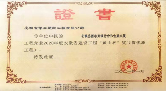 This “Huangshan Cup” Award is of great significance for Anhui No. 2 Construction Co., Ltd. not only in consolidating its brand image but also expanding its market shares.