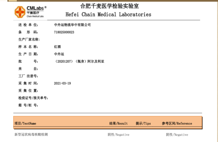 On March 19, all the imported red wine from Algeria was disinfected in accordance with the epidemic prevention regulations. On March 20, a negative nucleic acid test report for the wine bottles was obtained from the competent department, which has proved the safety of the imported shipment.